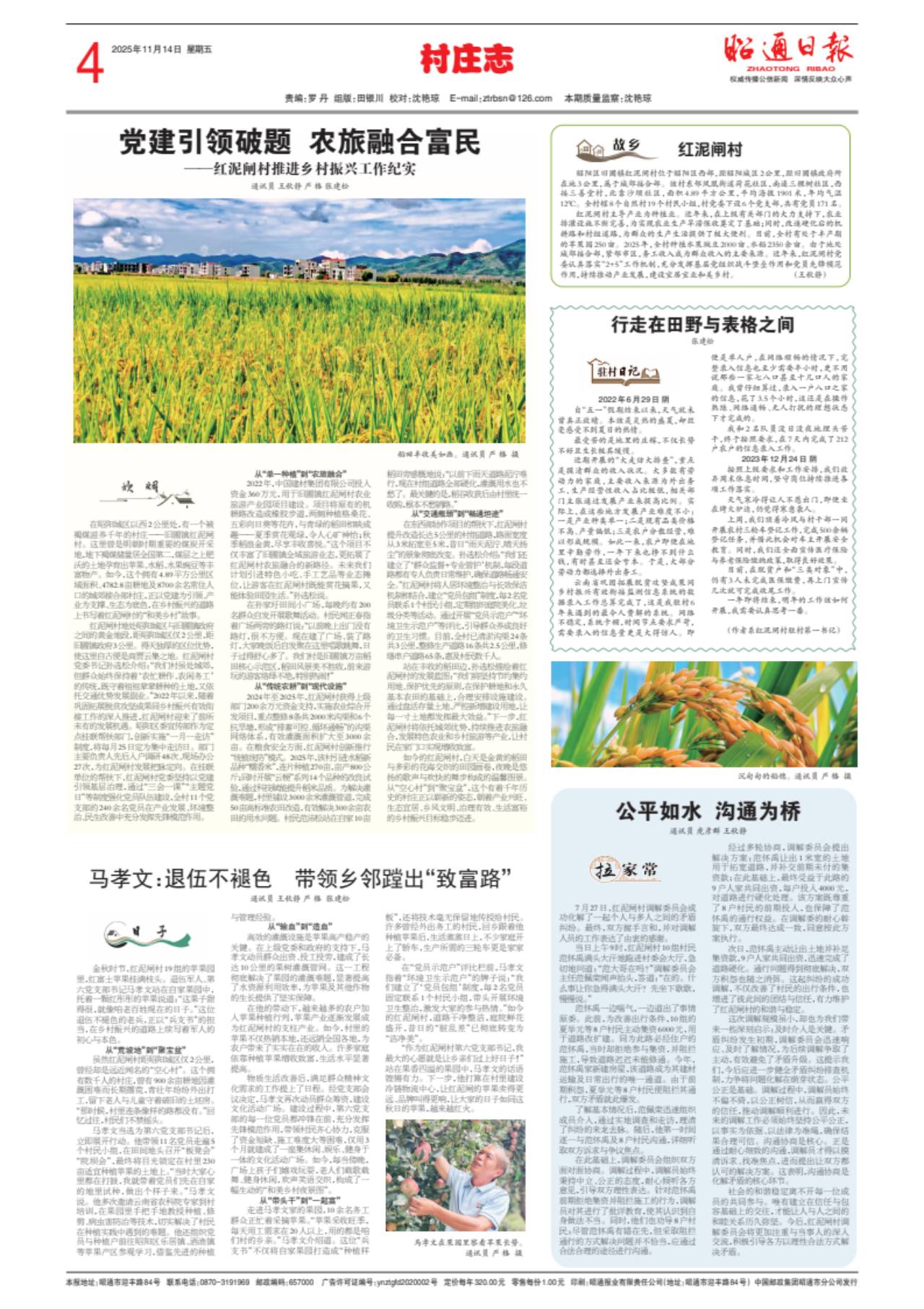 稻田丰收美如画。通讯员 严 格 摄红泥闸村地处昭阳城区与旧圃镇政府之间的黄金地段,距昭阳城区仅2公里,距旧圃镇政府3公里。得天独厚的区位优势,使这里自古便是商贾云集之地。红泥闸村党委书记孙选松介绍:“我们村虽处城郊,但群众始终保持着‘农忙耕作、农闲务工’的传统,既守着祖祖辈辈耕种的土地,又依托交通优势发展副业。”2022年以来,随着巩固拓展脱贫攻坚成果同乡村振兴有效衔接工作的深入推进,红泥闸村迎来了前所未有的发展机遇。昭阳区委宣传部作为定点挂联帮扶部门,创新实施“一月一走访”制度,将每月25日定为集中走访日。部门主要负责人先后入户调研48次、现场办公27次,为红泥闸村发展把脉定向。在挂联单位的帮扶下,红泥闸村党委坚持以党建引领基层治理,通过“三会一课”“主题党日”等制度强化党员队伍建设,全村11个党支部的240余名党员在产业发展、环境整治、民生改善中充分发挥先锋模范作用。