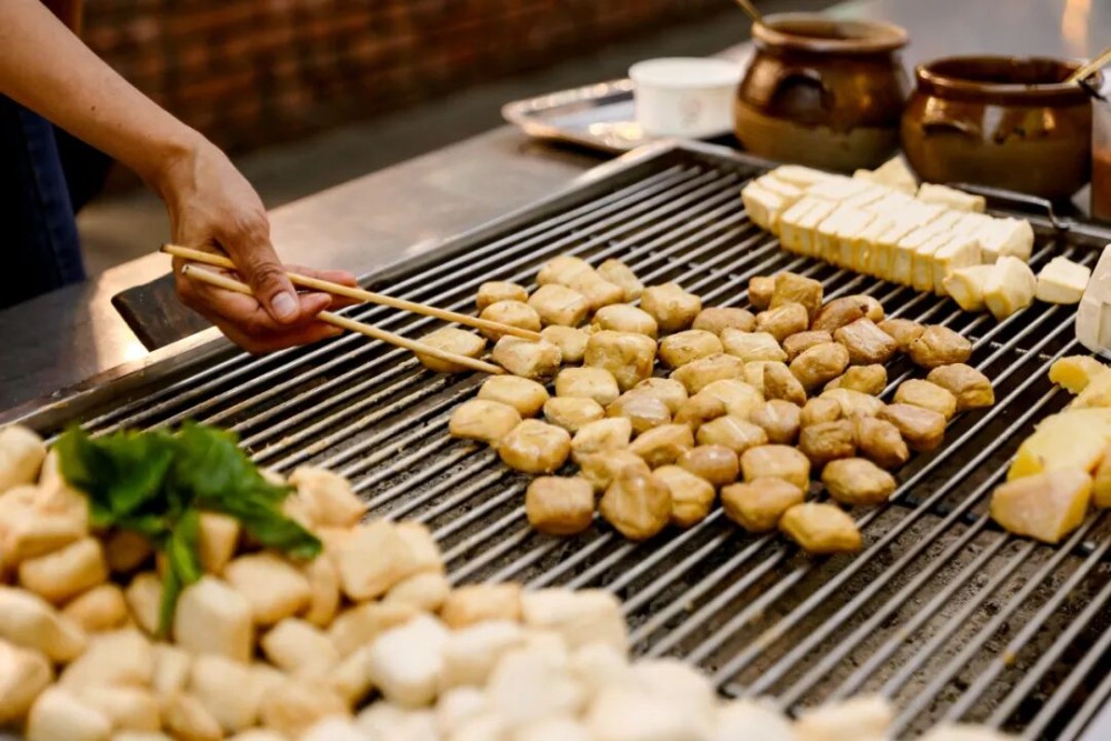店主正在翻烤建水豆腐。胡妤雅 摄