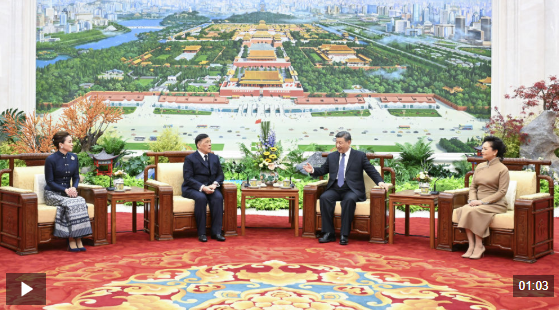 习近平表示,2022年,我和我的夫人彭丽媛对泰国进行访问,同国王和王后亲切会面,就巩固中泰友好深入交换意见,引领中泰关系迈入构建命运共同体的新阶段。