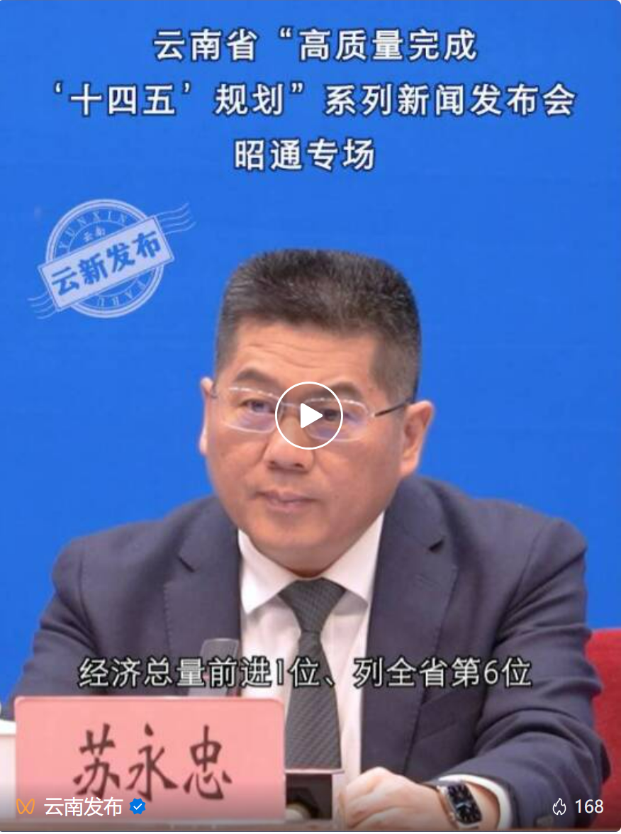 11月13日上午,云南省人民政府新闻办公室在云南海埂会堂,举行云南省“高质量完成‘十四五’规划”系列新闻发布会·昭通专场,介绍有关工作情况并回答记者提问。