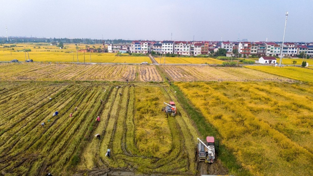 在浙江省金华市罗埠镇山下陈村,300多亩金华市农科院引进试种的“农香39”晚稻成熟,人们忙着开镰收割。新华社发