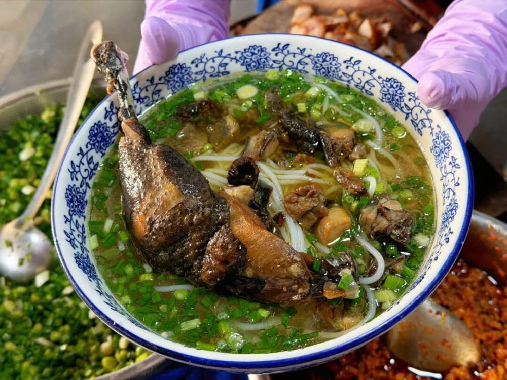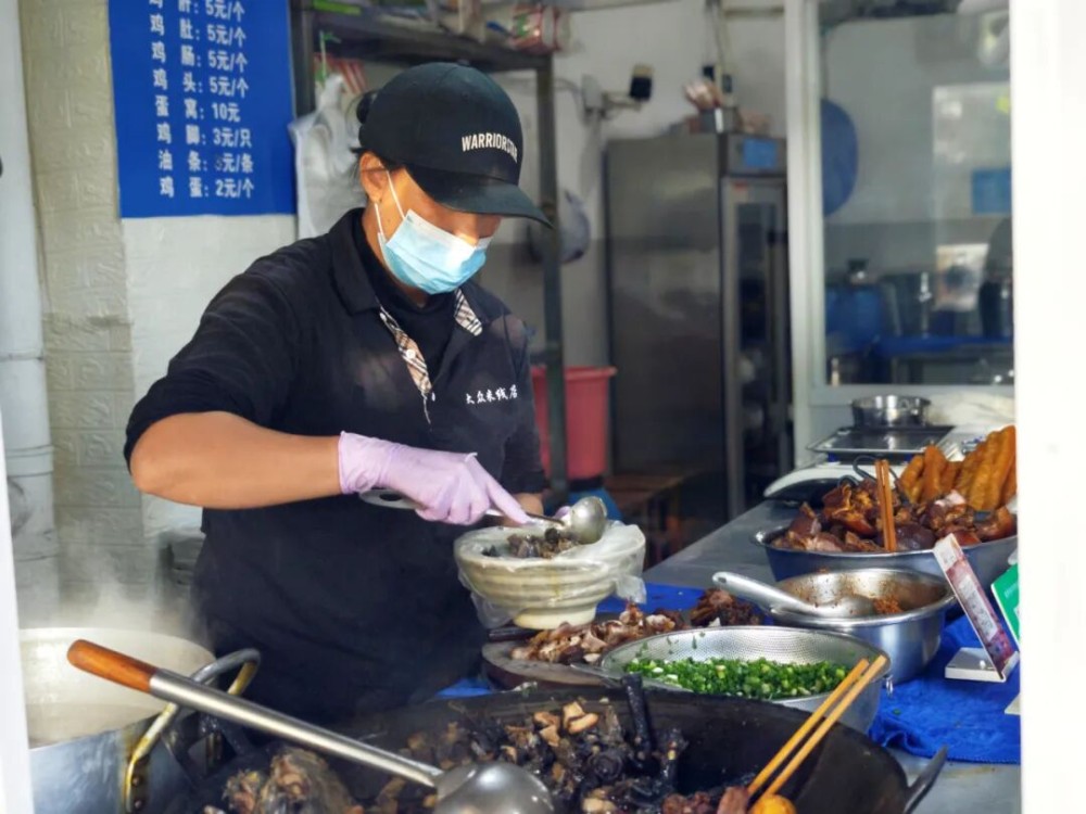 这碗米线的魅力,藏在百年传承的匠心与滋味里。云县米线的制作技艺已传承上百年,一碗地道米线的灵魂,全在“料”的讲究中。慢火熬制数小时的鸡汤,清亮澄澈又醇厚绵长。洁白的米线出锅后,可根据喜好搭配鸡肉、卤肥肠、猪肉等不同“冒子”,再辅以油辣椒、葱花、蒜末等佐料调味,色彩鲜亮诱人,香气扑鼻而来。食客围坐桌前,吸溜着滑嫩的米线,汤汁的鲜、配料的香、米线的弹在口中交融,一口下去满是治愈与满足。