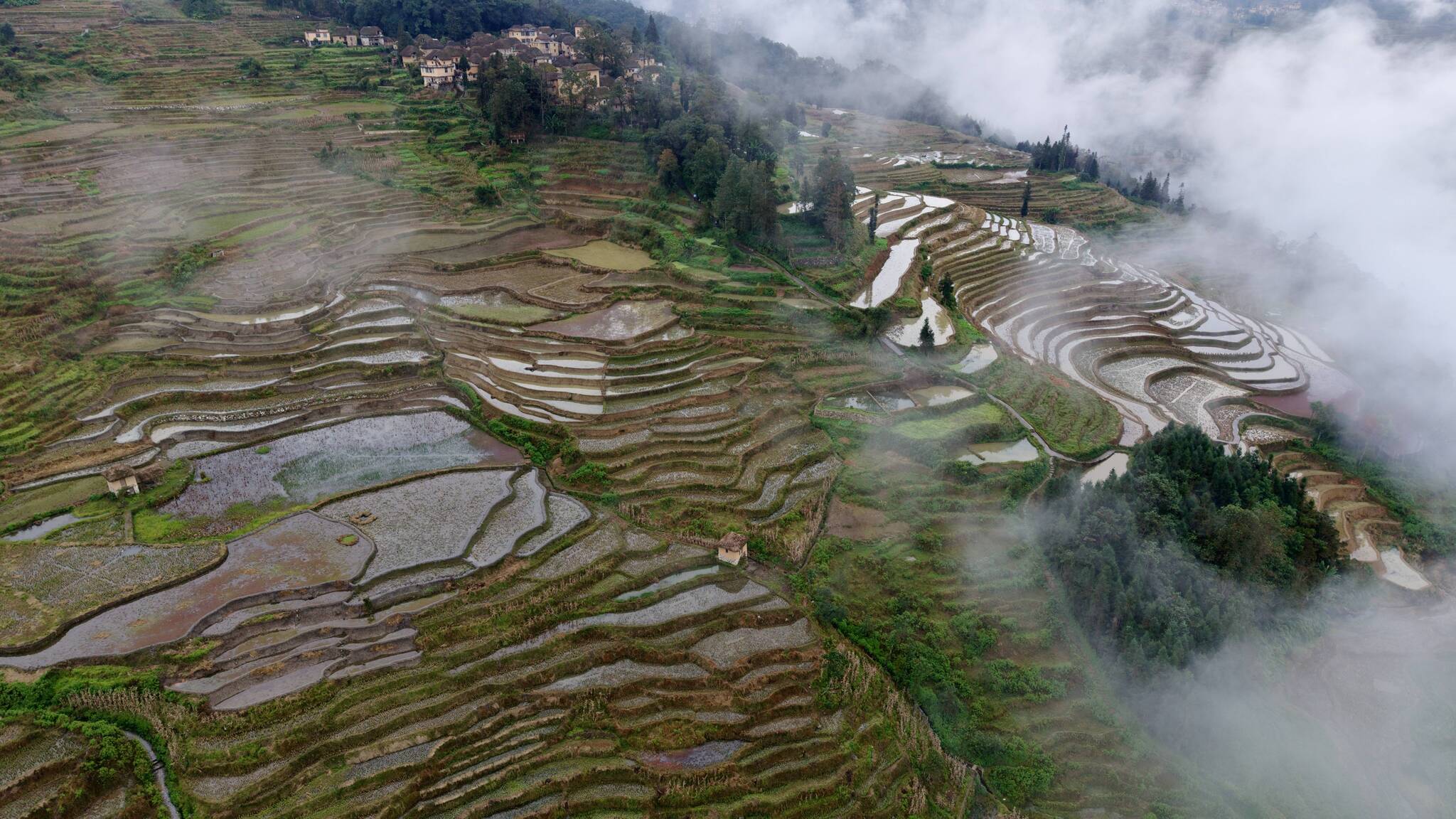 来自印度的博主阿迪深深沉醉:“这里的美,超越了我的想象!”他手持GoPro记录每一处细节。尽管细雨遮蔽了日落时分的金色光影,他仍笑着说:“这正好给了我再来的理由。听说晴日里的梯田会倒映整片天空,那一定是完全不同的风景。”