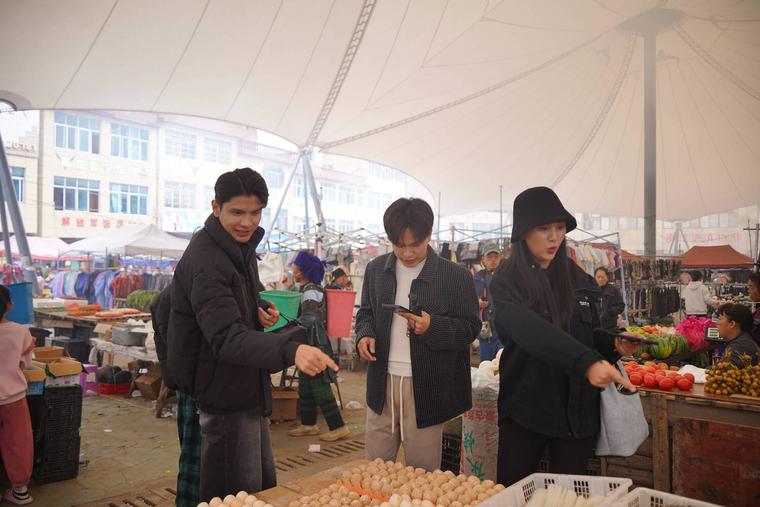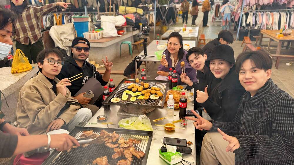 跟随当地人的生活节奏,博主们走进了牛角寨集市。这个依循传统日期开放的市集,宛如一个藏在大山里的宝藏:新鲜的山货、身着民族服饰的村民、此起彼伏的乡音,交织成一幅生动的生活画卷。老挝博主Parn被集市深处的炭火烧烤的香气吸引:“集市的烧烤真是太棒了!热闹的氛围透出的是乡村质朴的气息。”