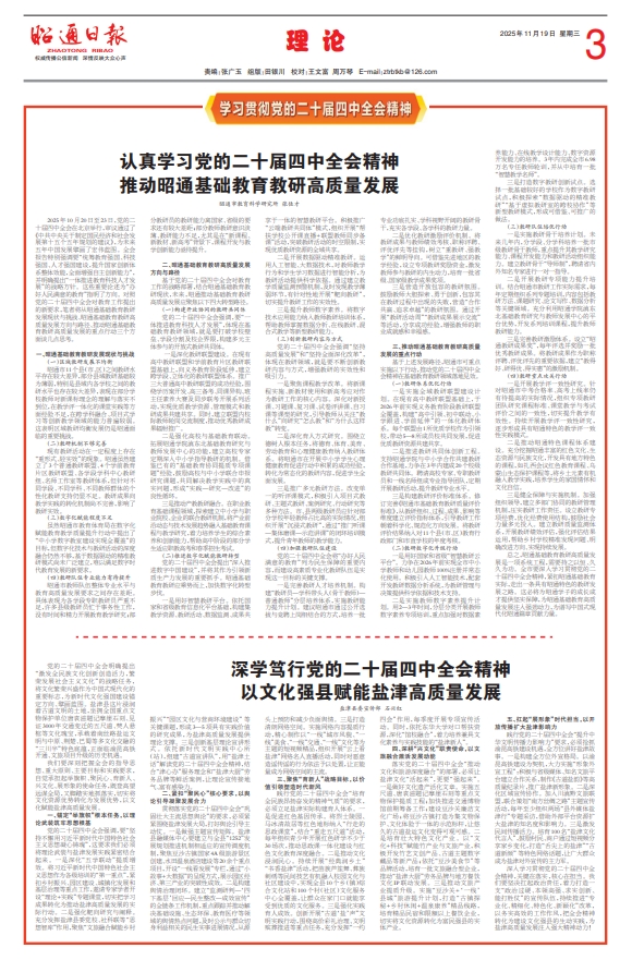 党的二十届四中全会提出“深入推进数字中国建设”,并将其作为引领新质生产力发展的重要抓手。昭通基础教育教研应乘势而上,加快数字化转型步伐。