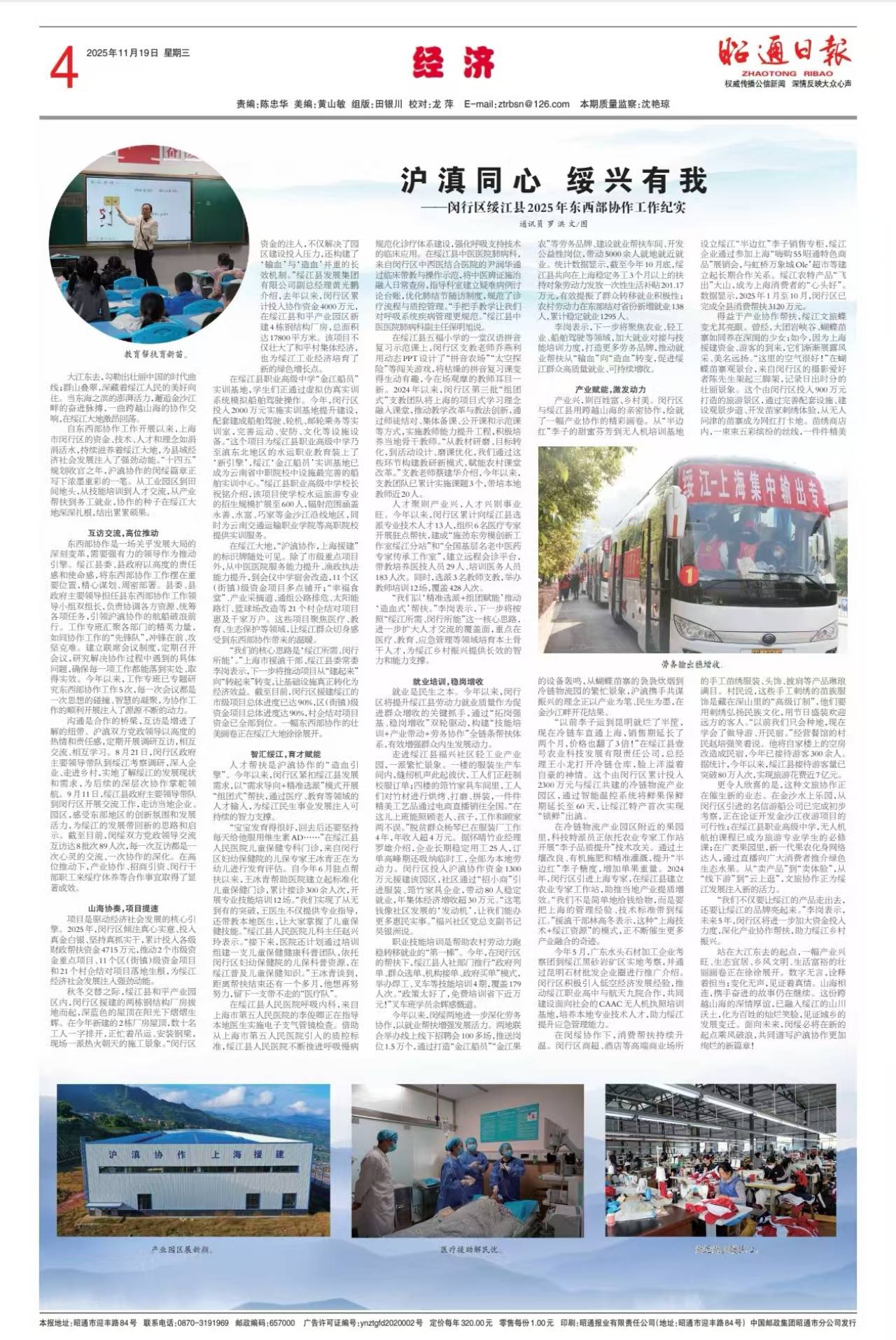 产业兴,则百姓富、乡村美。闵行区与绥江县用跨越山海的亲密协作,绘就了一幅产业协作的精彩画卷。从“半边红”李子的甜蜜芬芳到无人机培训基地的设备轰鸣,从蝴蝶苗寨的袅袅炊烟到冷链物流园的繁忙景象,沪滇携手共谋振兴的理念正以产业为笔、民生为墨,在金沙江畔开花结果。