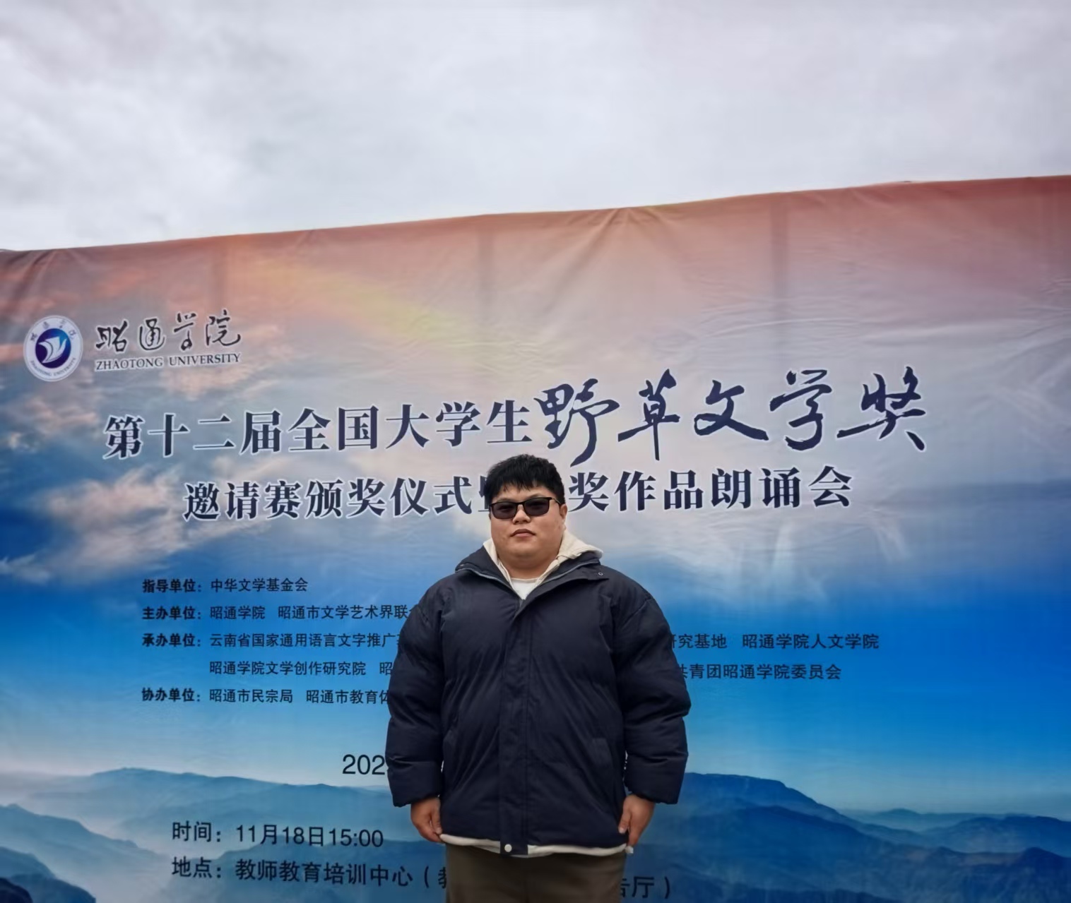 11月18日,第十二届全国大学生野草文学奖评选结果在昭通学院揭晓,贵阳学院在读研究生、云南腾冲籍青年作者谢恩传凭借组诗《棕木》斩获一等奖,其散文《今是而昨非》同步荣获三等奖。这位从云南大山深处走出的文学青年,以文字镌刻成长轨迹,用创作反哺故土深情,彰显了新一代写作者对生命与土地的深沉思索。