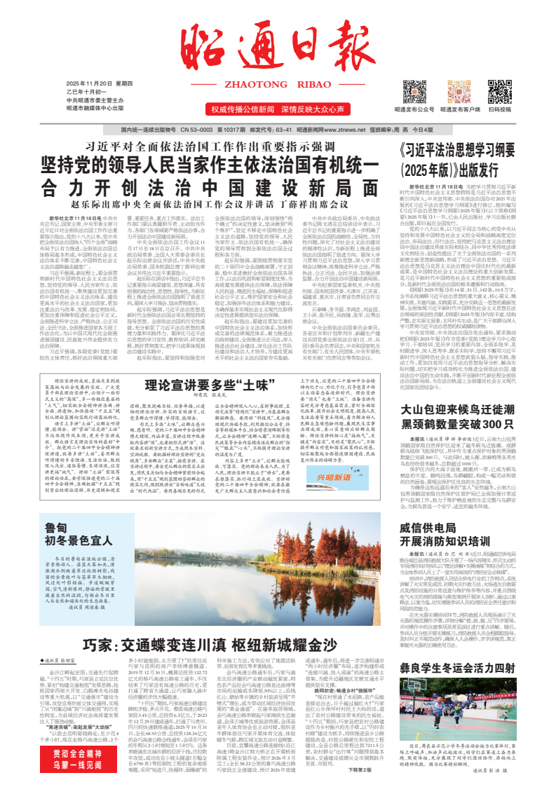 目前,宜攀高速公路连接线(沿江高速)跨金沙江特大桥正在开展桥面附属工程安装作业,预计2026年3月完工;全长58.22公里的鲁巧高速公路巧家段正全速建设,预计2026年底建成通车,通车后,将进一步完善昭通市“两小时经济圈”布局,逐步构建形成“连接川滇、快入成渝”的高速公路主骨架,为提升边疆地区互联互通水平提供坚实支撑。