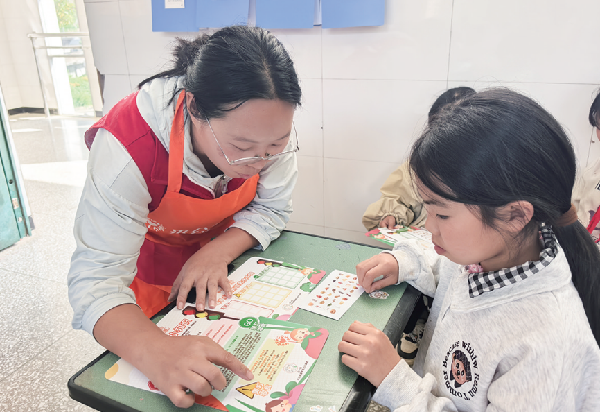 现场气氛活跃,全镇社工协同配合,组织开展了“零食分类互动游戏”和“自制健康饮品实验”等环节。孩子们积极参与,在游戏中巩固零食分类知识,在动手实验中学习制作健康饮品,深刻认识到了高糖饮料的危害。孩子们脸上洋溢着汲取新知的喜悦。活动最后发放了“亲子零食营养记录卡”,鼓励家长与孩子共同记录日常零食选择,推动健康饮食理念从课堂延伸至家庭。