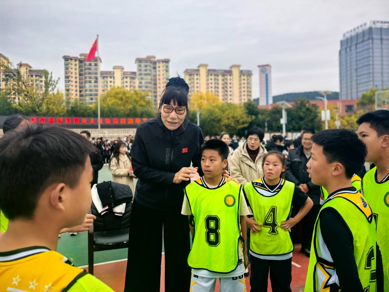 分组交流赛上,郑海霞担任“临时教练”,细致讲解攻防转换的战术要点。“1号位要快速回防,5号位保护好篮板。”她的战术指导让学生们受益匪浅。学生李世鸿赛后兴奋地说:“郑指导教的战术很实用,最后内线打板进球太令人兴奋了。”