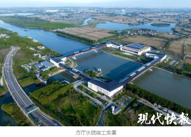 15分钟穿越沪苏浙、游览攻略发帖上万条、来访市民10万人次……在沪苏浙三地交界的太浦河上,一座独特的“院子”——方厅水院,正成为长三角的“网红地标”。它以传统四合院形制巧跨两省一市,宛如一颗精巧的“纽扣”,将长三角生态绿色一体化发展示范区的地理边缘无缝缝合为跨域协同的发展核心。