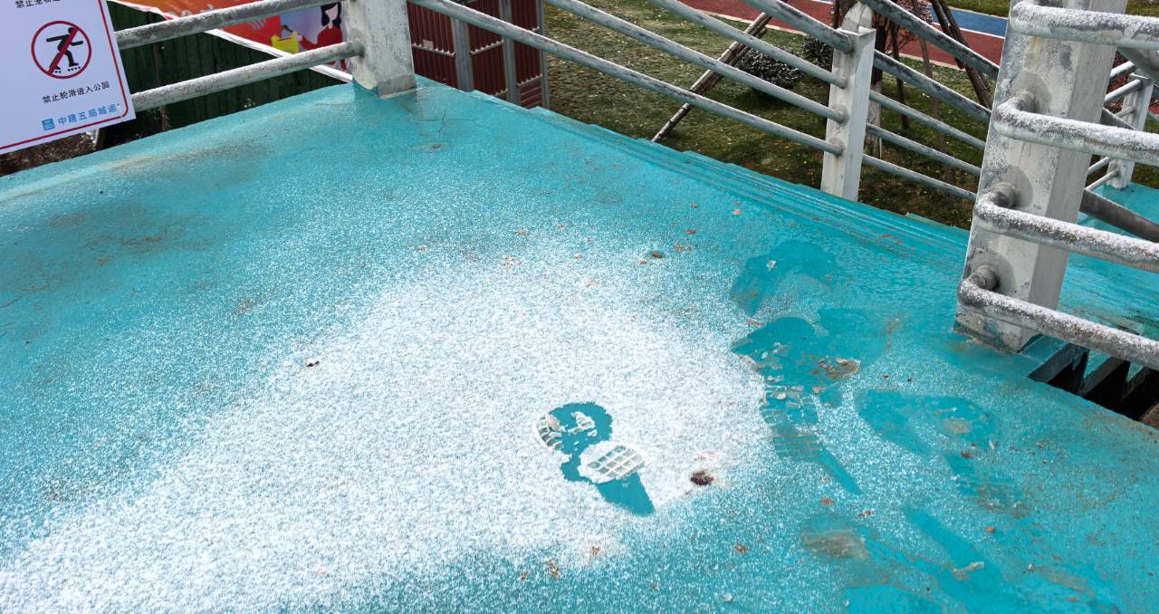 清晨的乌蒙水乡公园,是雪最用心的杰作。昨日还缀满枝头的金黄树叶,此刻被一层薄雪轻覆,像给大地铺了匹绵柔的锦缎,风一吹,便泛起细碎的白波,晃得人眼生暖意。长椅上积着蓬松的雪,椅面边缘因游人的触碰,露出点点深色木纹,像是岁月刻下的印记,藏着往来行人的温柔。阴冷潮湿的角落,薄冰悄然凝结,映着天空的微光,晶莹剔透,宛若一块易碎的水晶,让人不忍惊扰。