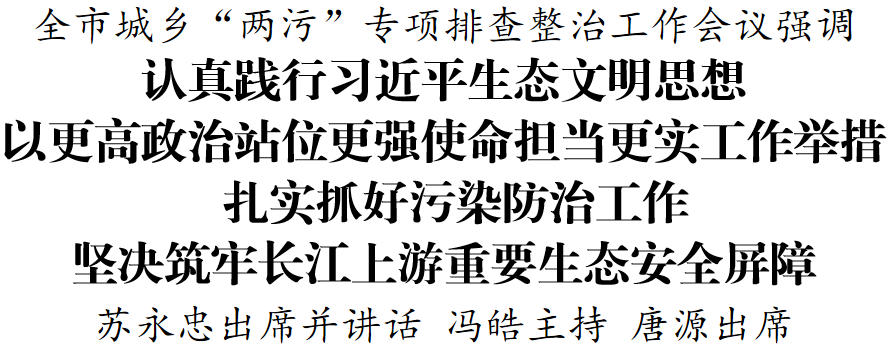 11月24日,全市城乡“两污”专项排查整治工作会议召开。11月24日,全市城乡“两污”专项排查整治工作会议召开,强调要深入学习贯彻党的二十届四中全会精神,认真践行习近平生态文明思想,深化落实习近平总书记考察云南重要讲话精神,以最严的监管、最严的措施、最严的纪律开展城乡“两污”专项排查整治工作,纵深推进“生态强市”建设,坚决筑牢长江上游重要生态安全屏障。