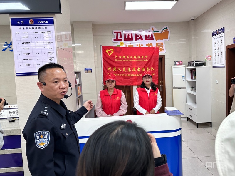 在河口城关边境派出所外籍服务站,越南籍志愿者用娴熟的中越双语为来办证的同胞提供翻译与政策解读。她在河口生活了30年,是当地最受欢迎的“跨境普法义工”。“很多越南同胞不熟悉中国法律,我可以帮他们听得懂、理得清。”她说。