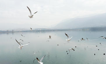 初冬时节,海鸥从寒冷的西伯利亚等地如约飞抵云南越冬。在昭阳区北闸街道的北闸水库,已有数百只海鸥栖息于此。