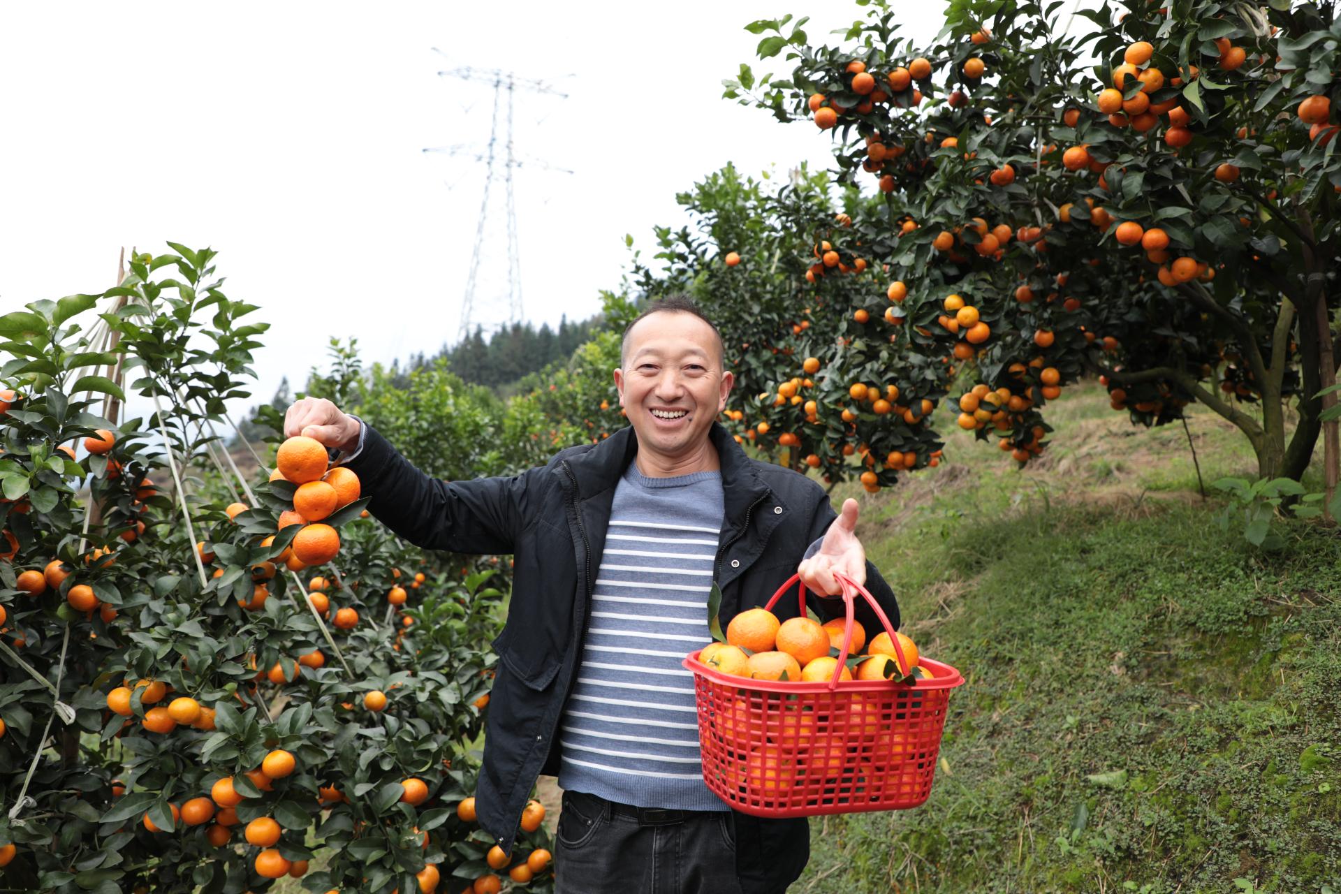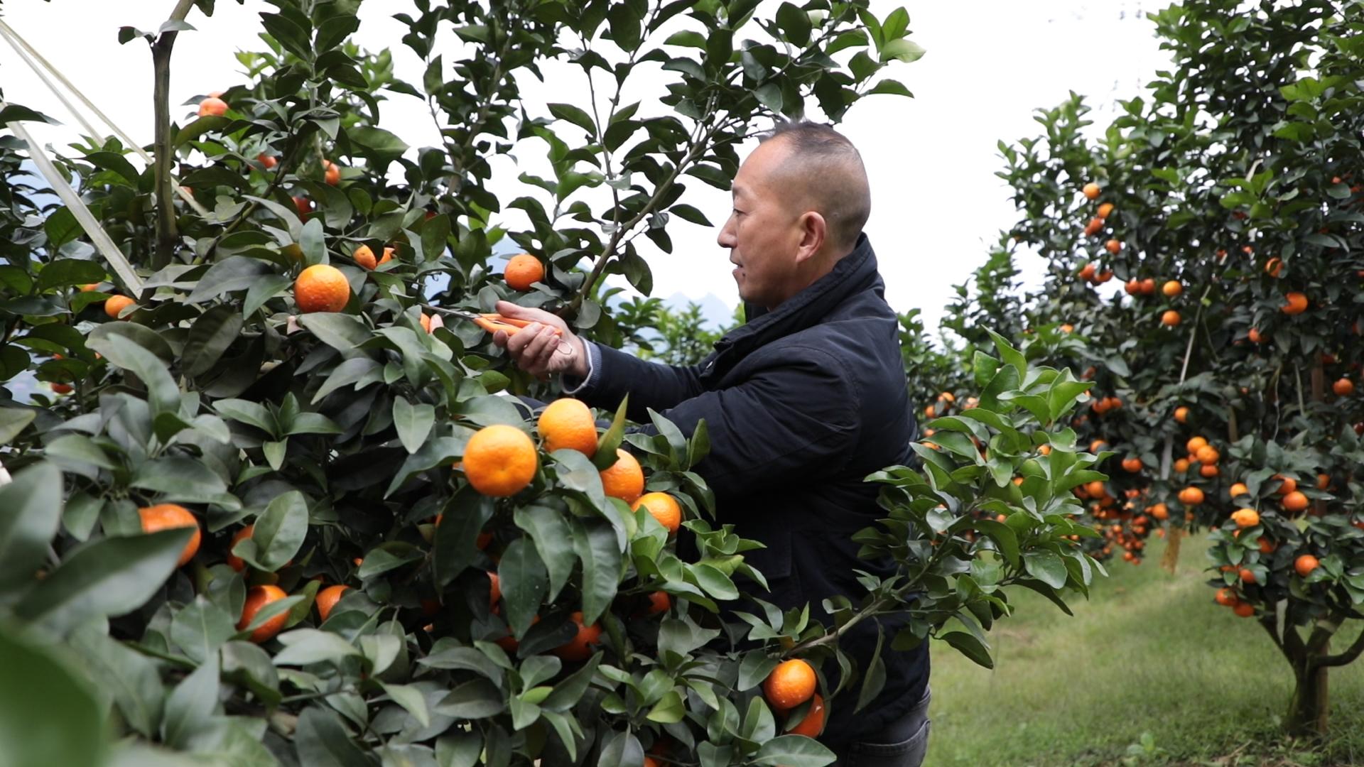 在庙坝镇麻柳村砂糖橘种植基地,种植户黄顺田提着果篮、手持剪刀,在果树间灵活穿梭,熟练地剪下成熟的橘子,脸上洋溢着藏不住的笑意:“我家种了50亩砂糖橘,今年的雨水较好,预计能采收8万斤,能卖30多万元!”