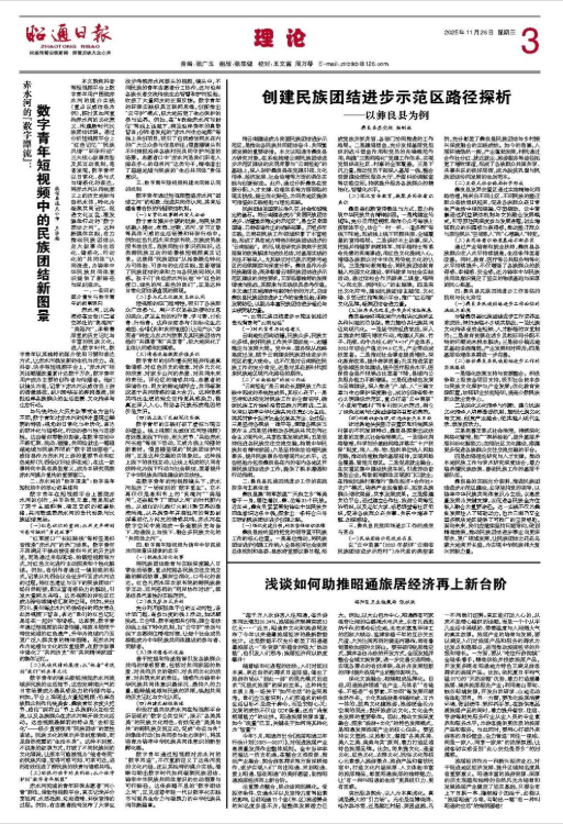 民族团结是国家长治久安、社会和谐稳定的基石。将云南建设成为“我国民族团结进步、边疆繁荣稳定的示范区”,是立足我国国情、云南省情作出的战略部署。历经多年实践,云南在民族工作领域积累了丰富经验,形成了具有地方特色的民族团结进步的“云南经验”。然而,现有研究多聚焦于宏观层面的政策解读与成效总结,对基层实践的关注不够深入,尤其缺乏对已获示范称号地区的后续跟踪与深度分析。彝良县作为多民族融居县,既承载着云南民族团结进步示范区建设的共性要求,又面临着独特的发展情境与挑战,其探索与实践极具参考价值。本文通过实地调研与案例分析的方式,总结彝良县民族团结进步工作的宝贵经验,明晰发展路径,以期为丰富民族团结进步理论与实践贡献力量。