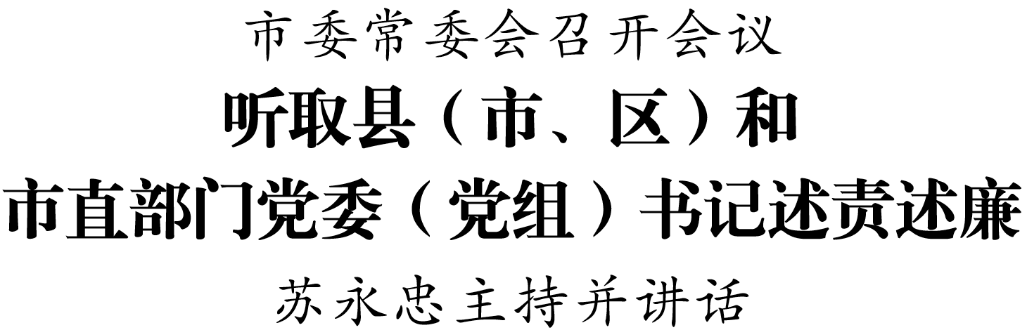 苏永忠强调,全市各级党委(党组)要切实履行主体责任,把管党治党作为分内之责、应尽之责,做到守土有责、守土负责。各级纪委要认真履行监督专责,精准运用“四种形态”,强化日常监督,敢于斗争、善于斗争,不断增强监督穿透力、震慑力。党委(党组)书记要扛实“第一责任人”责任,做到重要工作亲自部署、重大问题亲自过问、重点环节亲自协调、重要案件亲自督办。领导班子成员要严格落实“一岗双责”,抓好分管领域全面从严治党工作,做到真管真严、敢管敢严。党员干部要自觉学习党章党规党纪,筑牢思想防线,严守纪律规矩,习惯在受监督和约束的环境中履职用权、干事创业。