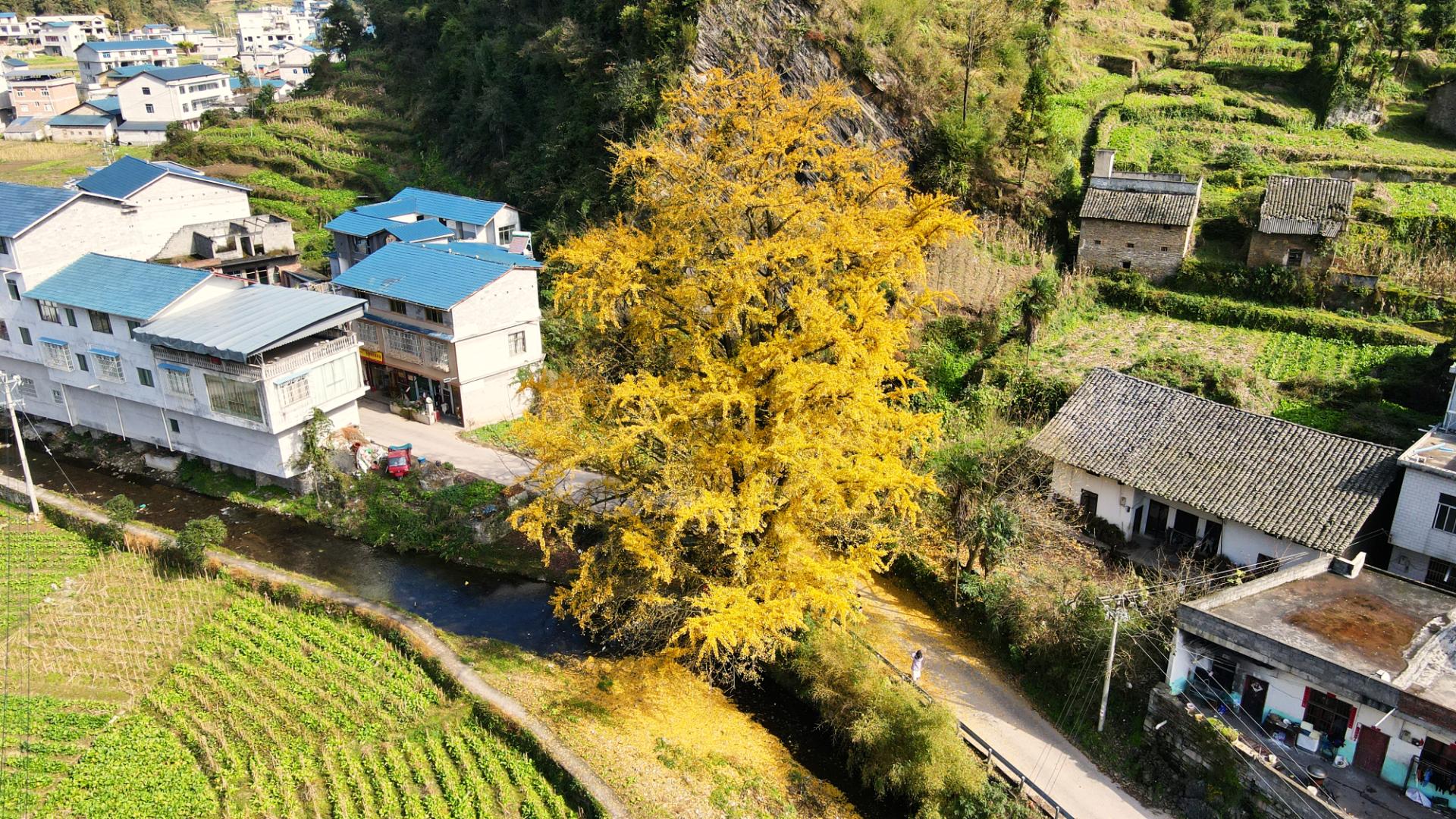 威信过街楼银杏古树 “披金”迎客