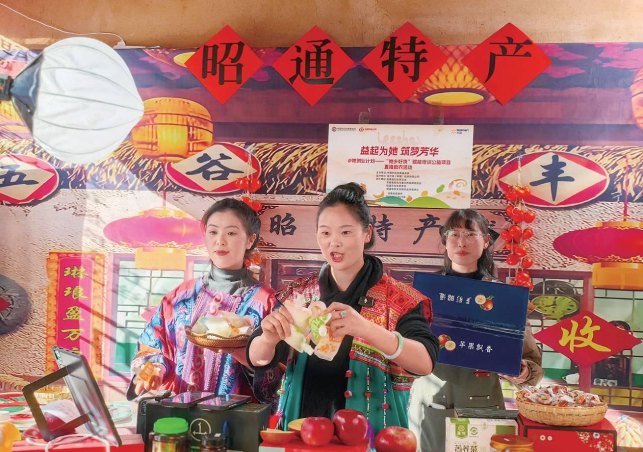 据悉,本次直播是@她创业计划——“她乡好货”赋能培训公益项目的实战环节,由中国妇女发展基金会主办,沃尔玛(中国)联合支持,云南省妇联、云南省妇女儿童工作发展促进会、昭通市妇联、昭通妇创中心共同承办。通过“专业培训+实战直播”模式,为本土女性创业者搭建推广桥梁,既让大山里的好货走出了昭通,又构建起“女性赋能—产业升级—乡村发展”的良性循环,用行动书写公益助农的责任与担当。
