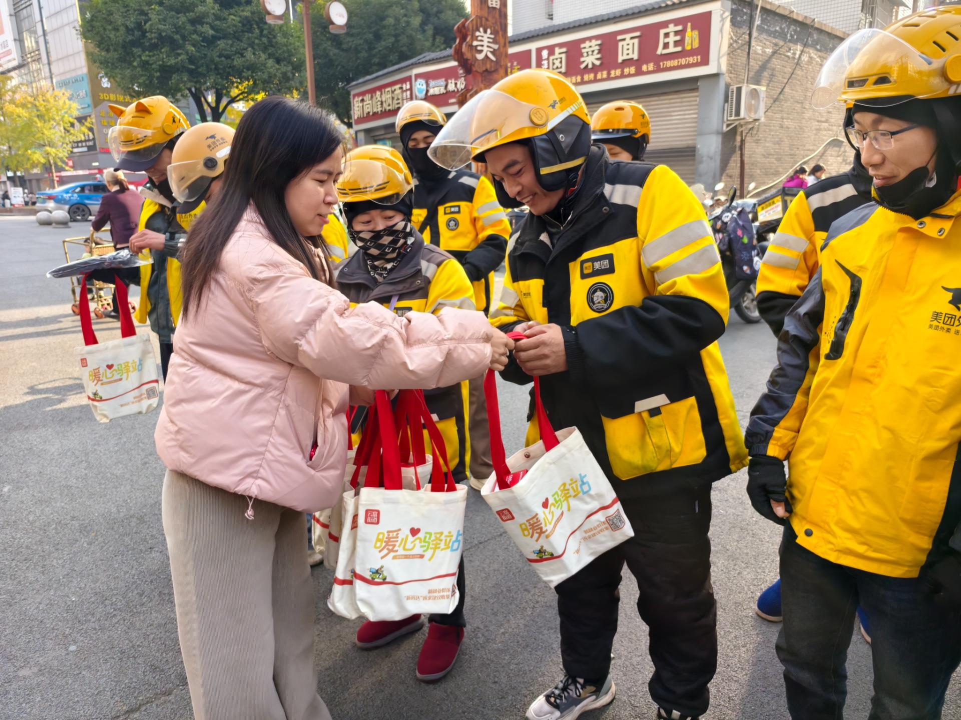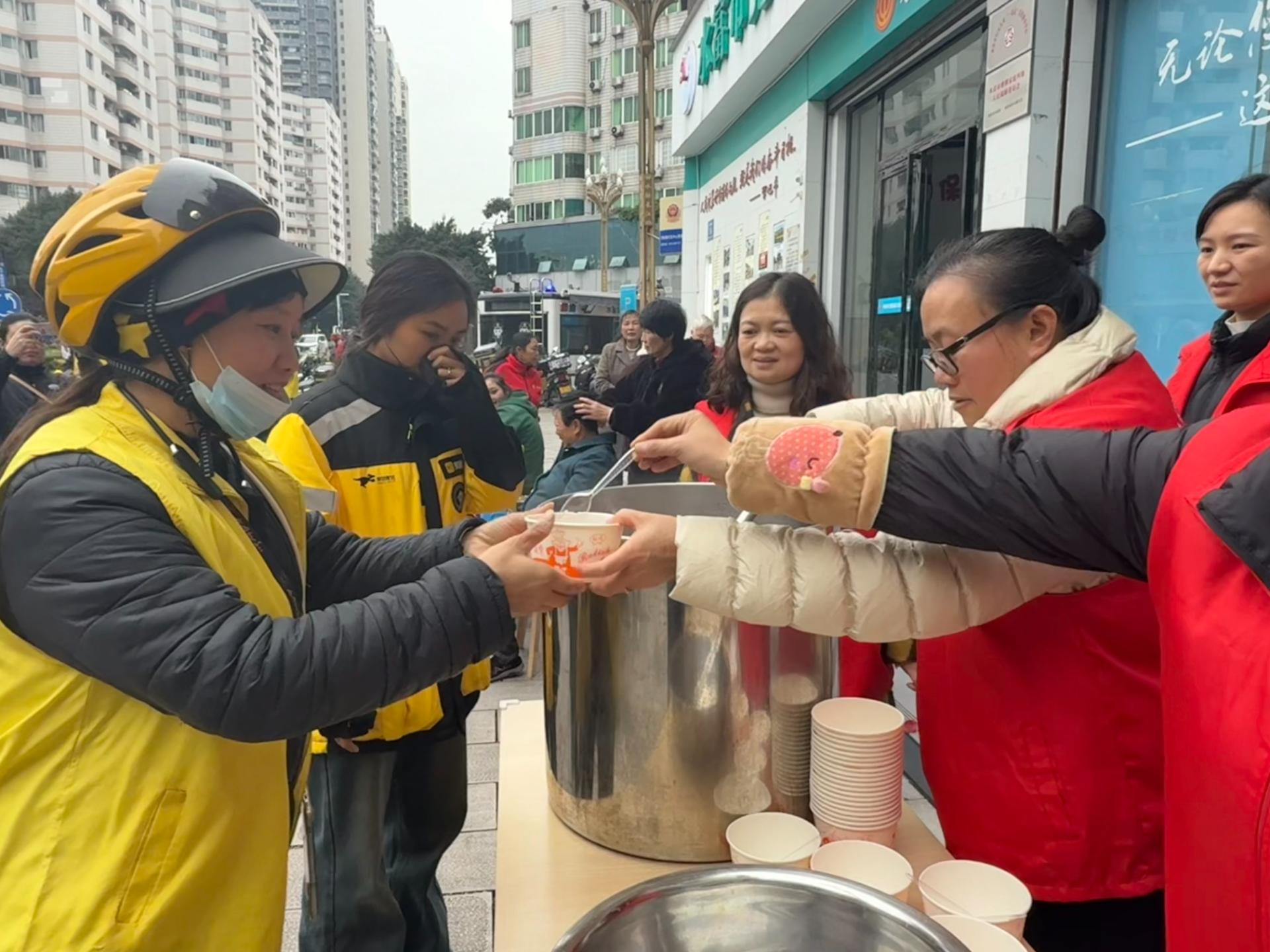 活动中,志愿者为大家准备了热气腾腾的糖水汤圆,让奔波的户外劳动者在寒冷的冬日暖胃又暖心。同时,还为135名新就业形态劳动者送上“温暖三件套”,让他们感受到关怀与温暖。