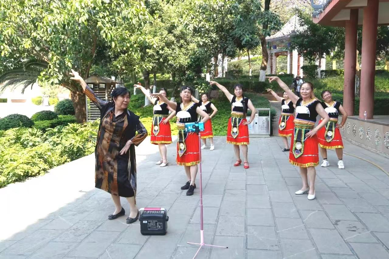 退休后的刘声美从未按下“暂停键”,反而在更广阔的舞台上延续着奉献之路。凭借能歌善舞的特长,她牵头组建巧家县“阳光歌舞团”,还志愿担任巧家县老年大学舞蹈老师,将退休干部职工凝聚起来,用文艺传递正能量。她带领团队自编自导《红船赞歌》《领航新时代》等节目,足迹遍布全县社区、移民安置区、敬老院及周边县区,开展送文艺下乡、政策宣讲等志愿活动100余次,用群众喜闻乐见的方式宣讲党的惠民政策。