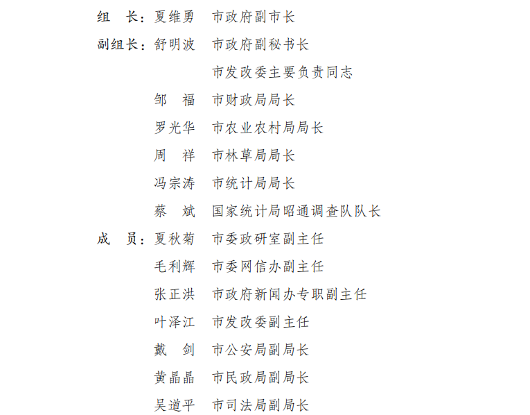 (一)成立普查机构。设立昭通市第四次全国农业普查领导小组,负责统筹协调和调度推进全市农业普查各项工作。领导小组下设办公室在市统计局,负责处理日常事务。领导小组不纳入市人民政府议事协调机构管理,普查任务完成后自动撤销。领导小组副组长、成员如有变动,由副组长、成员单位相应岗位职责人员自行递补,报领导小组办公室备案,不再另行发文。
