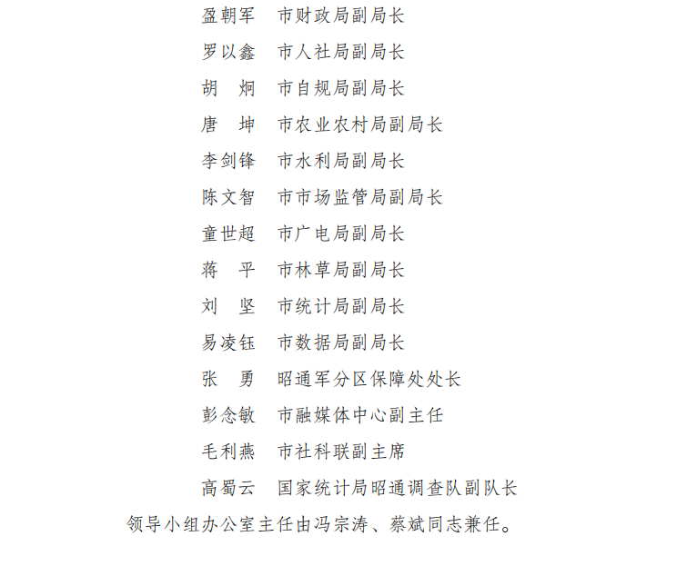 附件:昭通市第四次全国农业普查领导小组组成人员名单