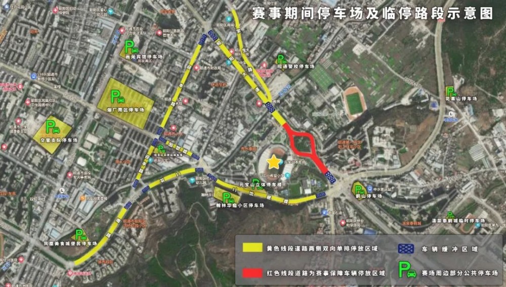 1.赛场周边道路车辆停放基本情况:车辆可沿昭阳大道、二环南路、团结路、迎丰路、学生路两侧单排顺向依次停放。