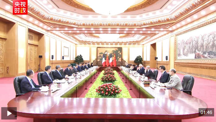 习近平指出,中法都是有远见、有担当的独立自主大国,是推动世界多极化、促进人类团结合作的建设性力量。当前,百年变局加速演进,人类又一次站在何去何从的十字路口。中法两国应当展现责任担当,高举多边主义旗帜,坚定站在历史正确一边。
