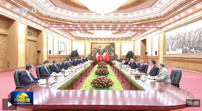 12月4日上午,国家主席习近平在北京人民大会堂同来华进行国事访问的法国总统马克龙举行会谈。