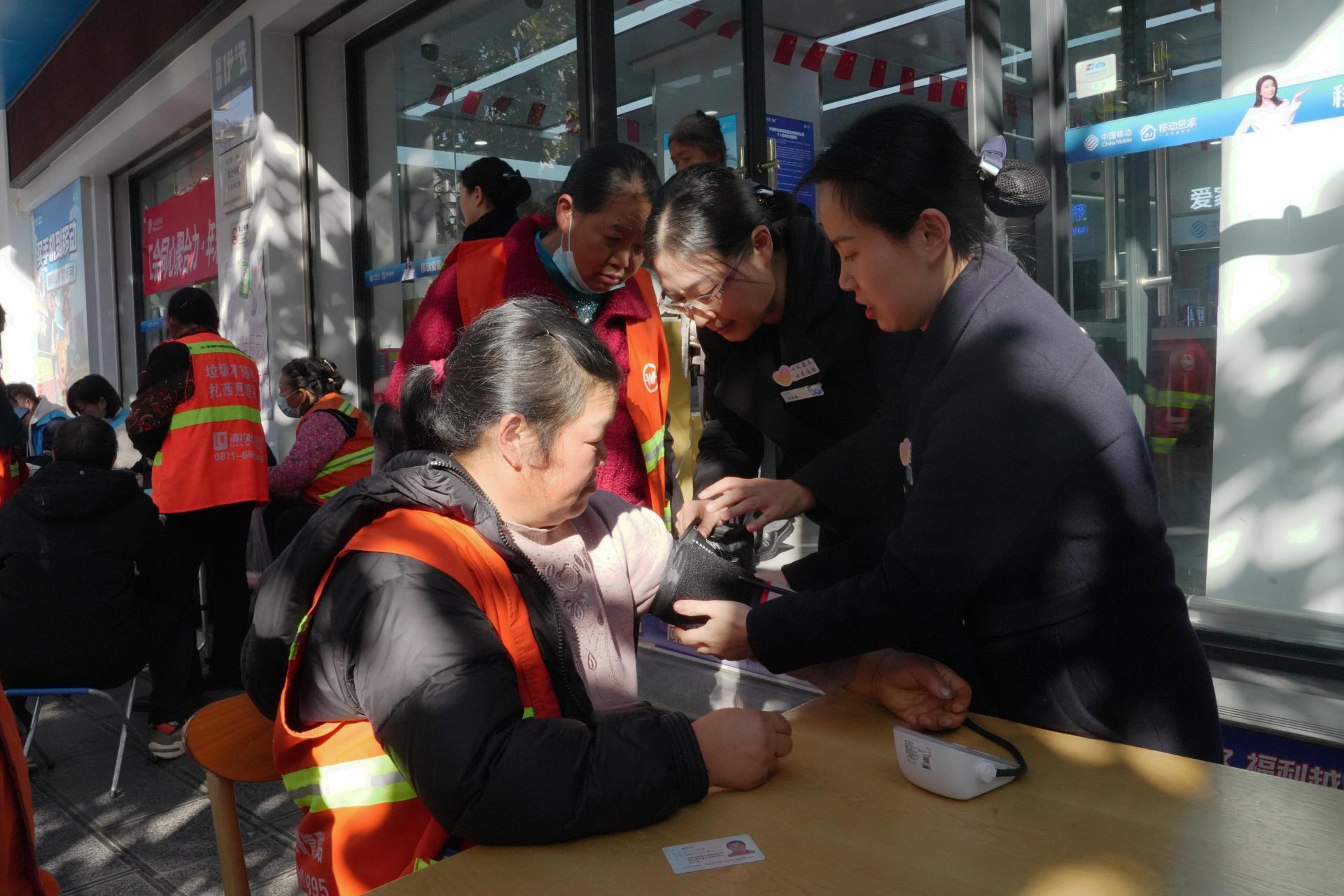 活动现场设置了基础关怀区,为环卫工人提供了血压测量、血糖检测等健康服务,帮助环卫工人及时了解自身健康状况。在“智慧助老助残课堂”环节,工作人员手把手教授智能手机操作技巧,从视频通话到电子支付,让环卫工人更好地融入智慧生活。同时,现场工作人员还开展了反诈知识和健康常识宣传。此外,主办方还特别准备了200台血压仪赠送给环卫工人,让他们在家中也能监测健康状况。