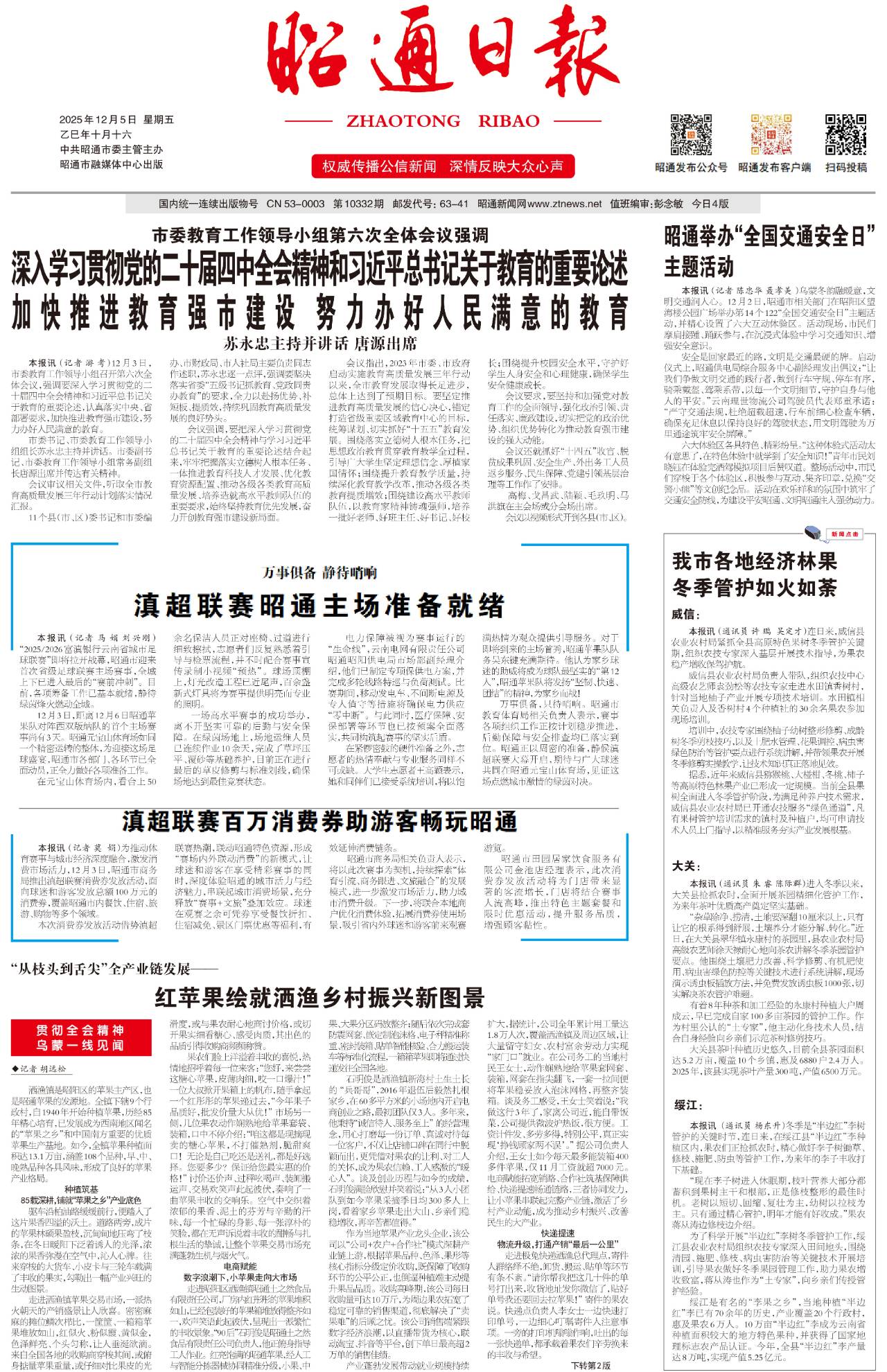 从种植基地的硕果盈枝到交易市场上的烟火升腾,从电商直播间的购销两旺到快递网络的通江达海,再到合作社的抱团聚力,洒渔镇以苹果为媒,构建起“种植筑基、电商赋能、快递提速、合作社联动”的全产业链生态。85年深耕细作,13.1万亩果园筑牢产业根基,龙头企业与合作社架起产销桥梁,数字技术打通出山通道,不仅让昭通苹果香飘全国,还让更多富余劳动力实现“家门口就业”,收获稳稳的幸福。这条从枝头到舌尖的产业链,既是乡村产业振兴的生动实践,又是富民兴村的坚实支撑,未来必将持续释放发展动能,绘就更多产业兴旺、百姓富足的乡村新图景。
