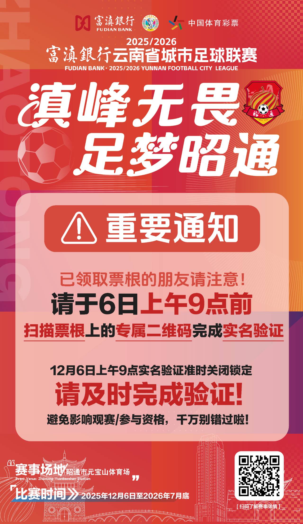 滇超联赛 | 请注意!明早9点前完成实名验证