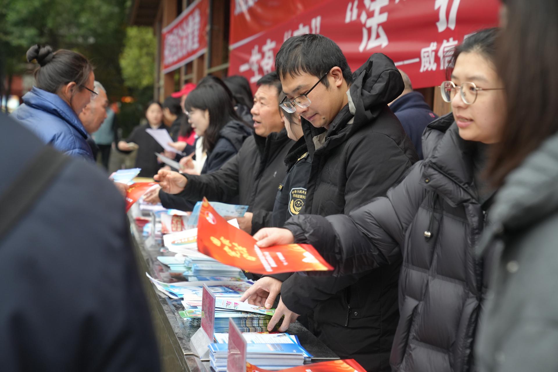 台下同步设立法律咨询服务台,法官、检察官、律师等专业力量为群众提供免费法律咨询、问题答疑、纠纷调解指引等服务,精准回应群众在婚姻家庭、劳动用工、邻里纠纷等方面的法律需求,现场发放宪法读本、法律知识手册等宣传资料。