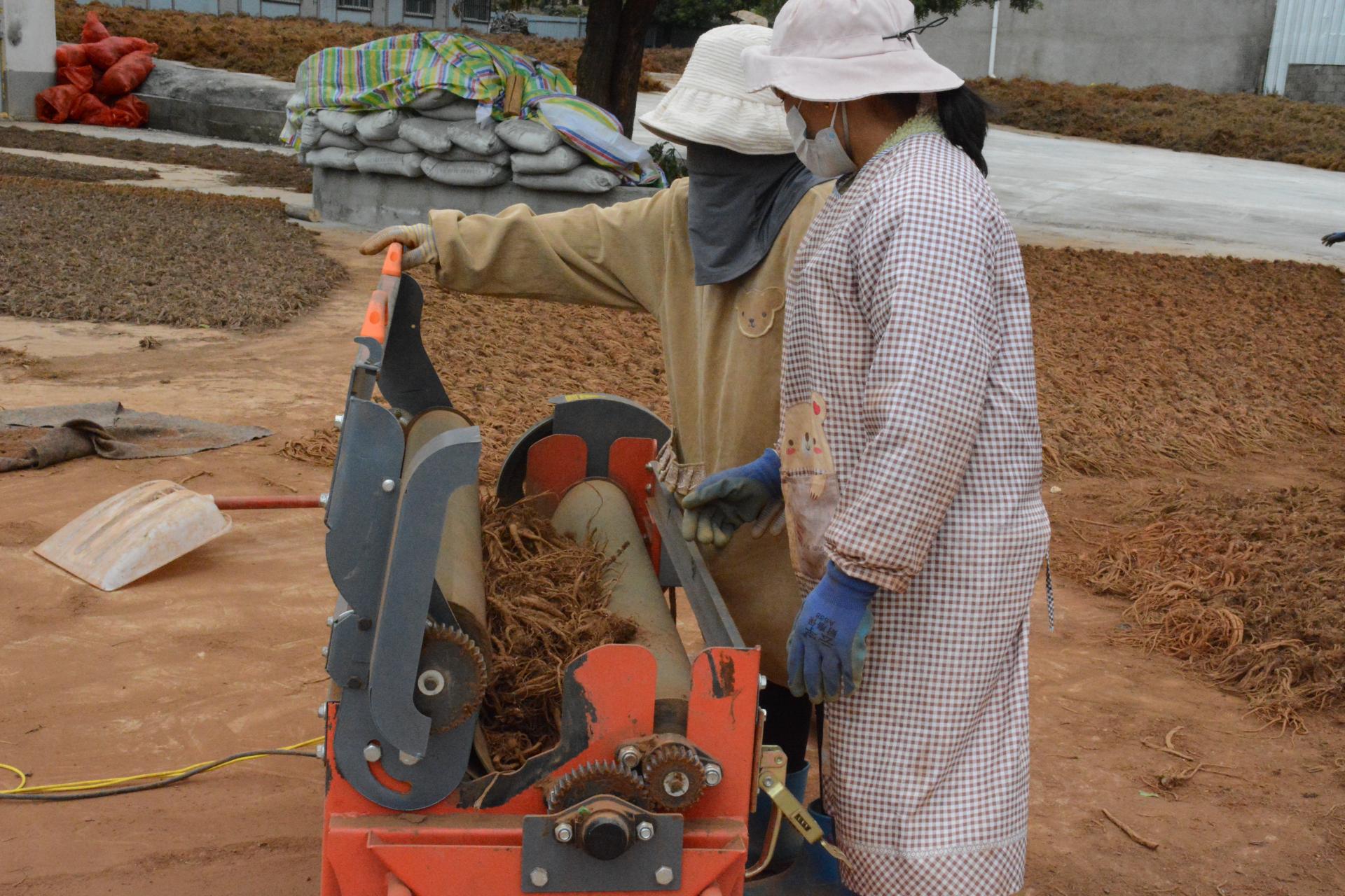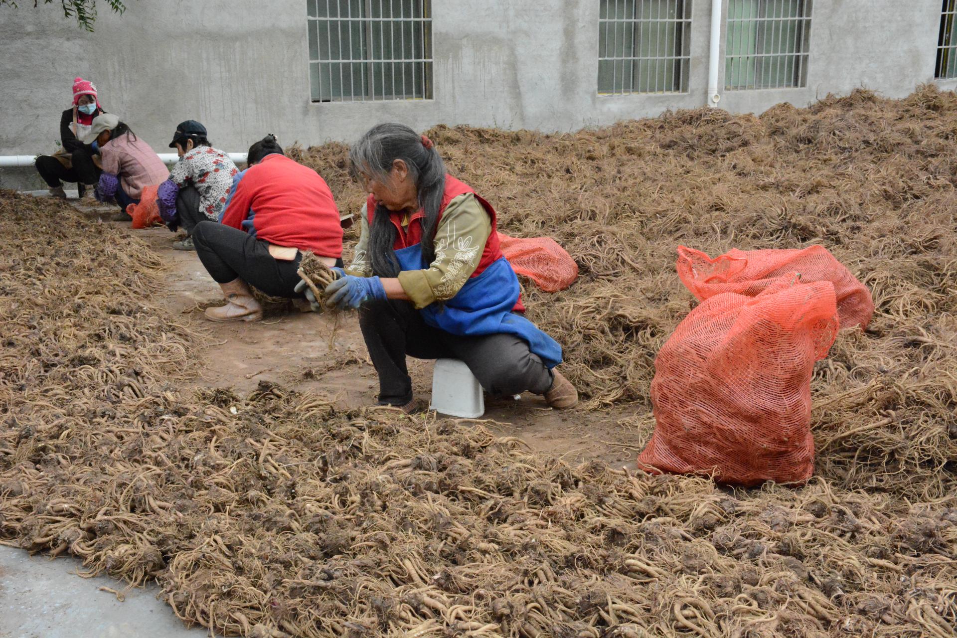 厂房外,六七名工人坐在小板凳上分拣当归,仔细将须根归拢并整齐码放。“头部要朝上,这样更容易晒干。”文笔社区居民丁正莲一边利落地扎捆须根,一边笑着说,“我50多岁了,平时在家闲着,这活轻松、好上手,一小时能挣10元,厂区离家也就10多分钟,我很满意。”