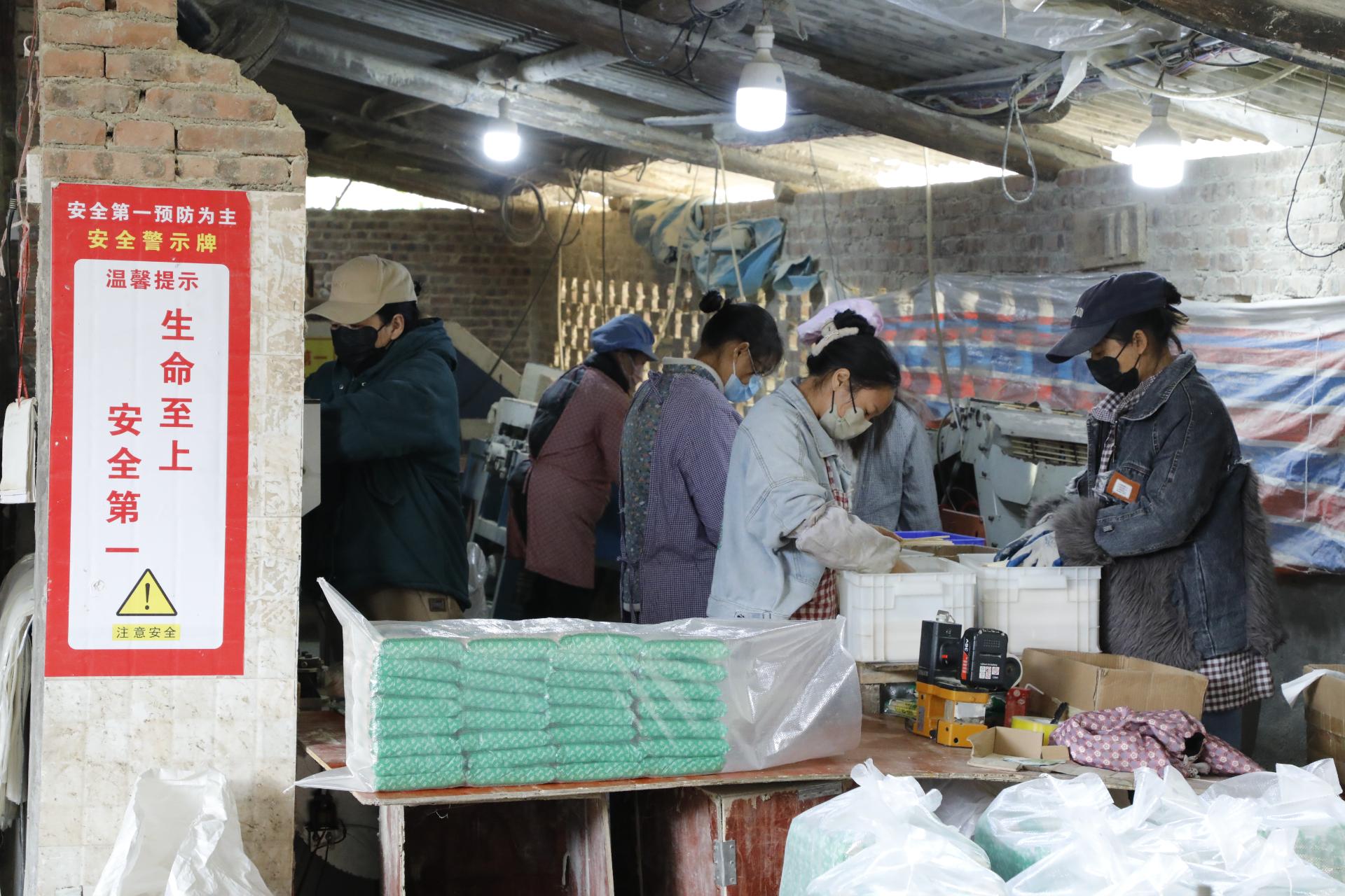 在厂里工作的多是周边村民。工人曾吉群表示:“工作比较轻松,上班可以顺路送孙子上学,下班正好可以接他放学。这里离住处和学校都近,每个月有3000元左右的收入。”