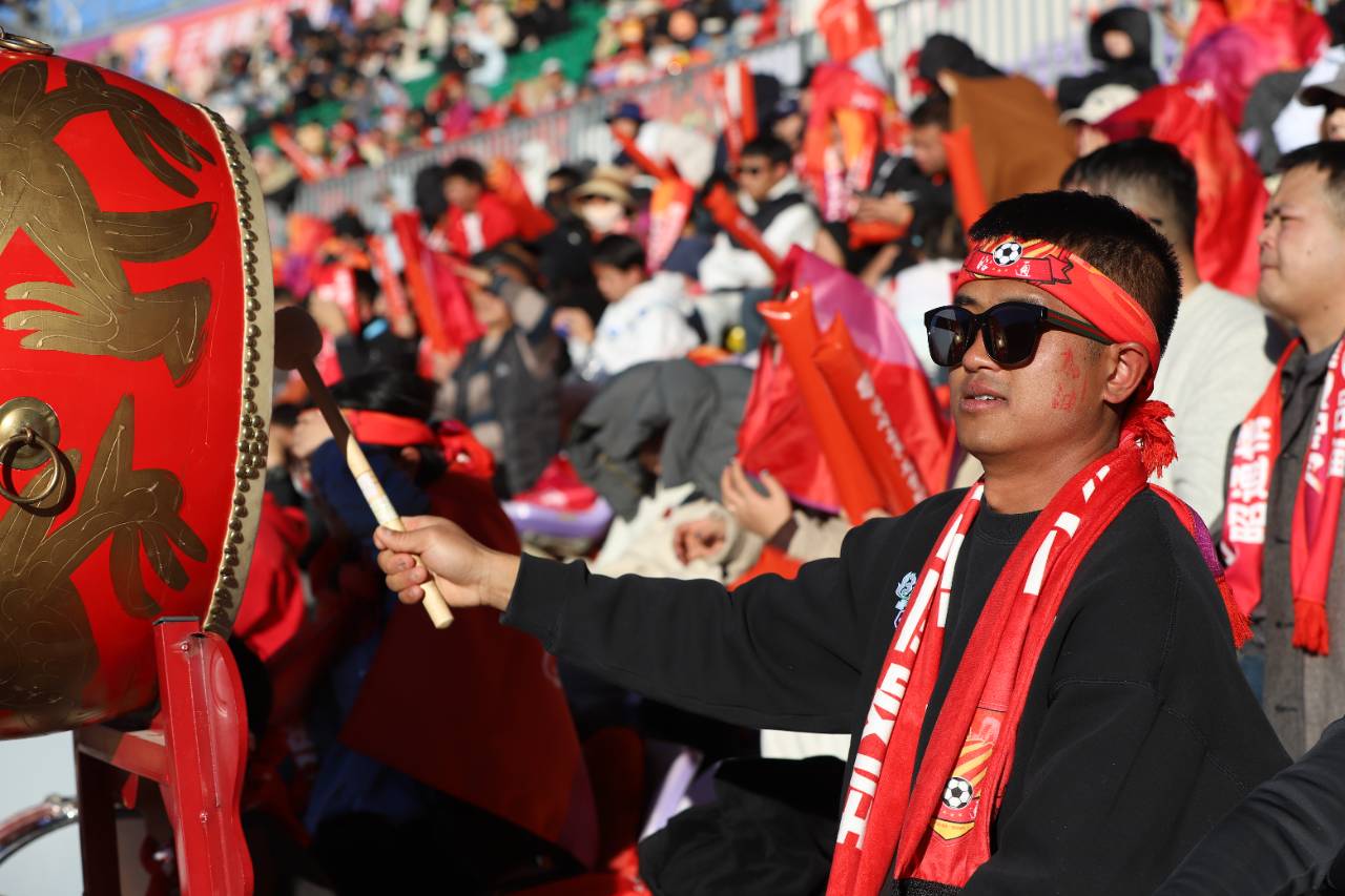 赛前,1万余名主场球迷早早集结,欢呼声此起彼伏,提前点燃赛场氛围。球员热身期间,加油声不绝,亲子球迷、特色队服点缀看台,尽显足球热情。