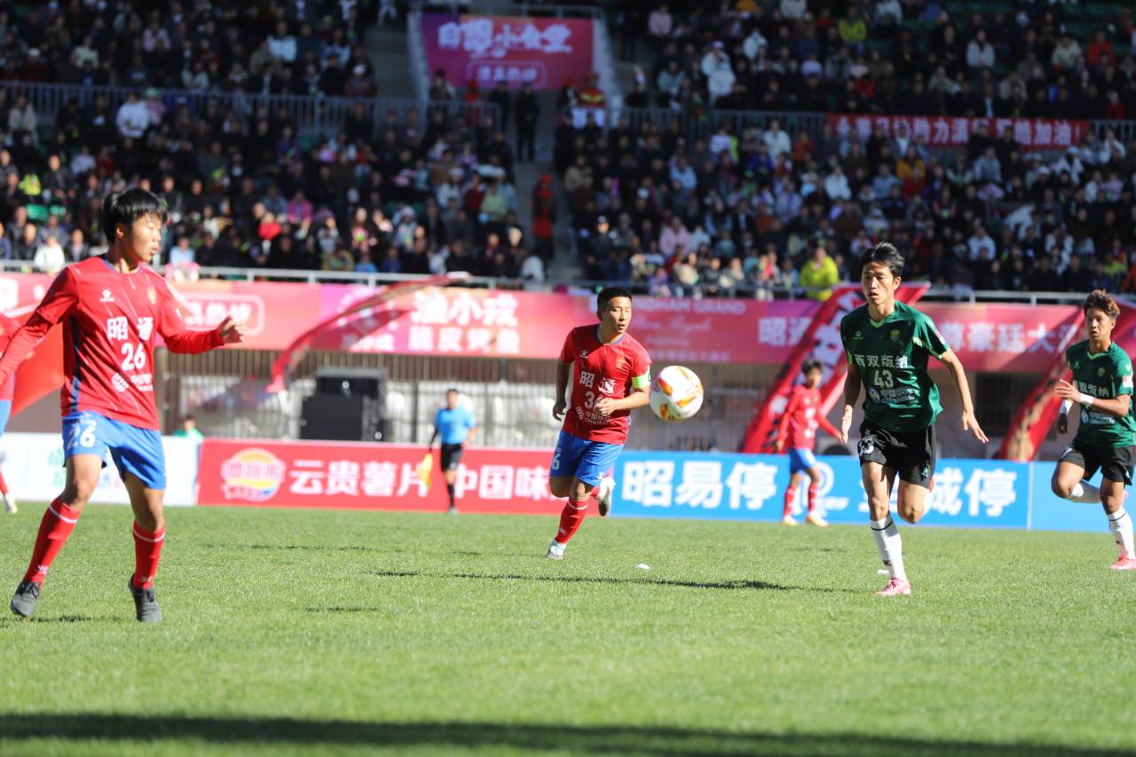 随着主裁判一声哨响,比赛正式开始。在球迷的注视下,双方球员迅速进入状态,传球、抢断、射门等攻防转换接连上演,每一次精彩配合都引来观众阵阵喝彩。主场作战的昭通队球员凭借对场地的熟悉,开场后便占据主动,不断通过边路突破和中路渗透向对方球门发起冲击,多次在对方禁区前沿制造威胁,展现出昂扬的斗志与默契的团队协作。
