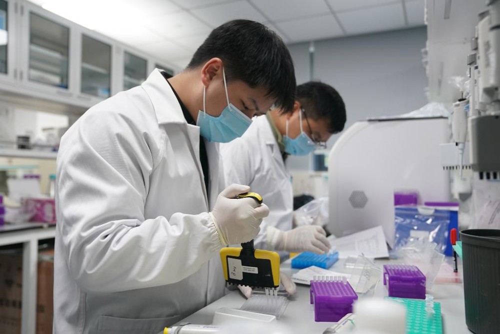11月20日,在苏州一家生物制药公司,实验人员在提取信使核糖核酸。新华社发(陈雨禾摄)