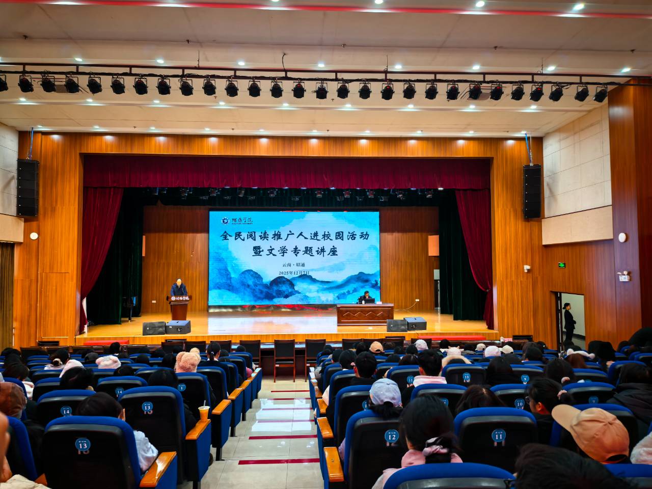 12月7日上午,昭通学院校园内书香四溢,“全民阅读推广人进校园活动暨文学专题讲座”在此举行。活动以“文学里的沉溺与节制”为主题,特邀《思南文学选刊》副主编、中国现代文学馆特聘研究员黄德海,带领师生深入解读《诗经·召南·摽有梅》,共同探讨文学创作中情感表达的平衡与智慧。
