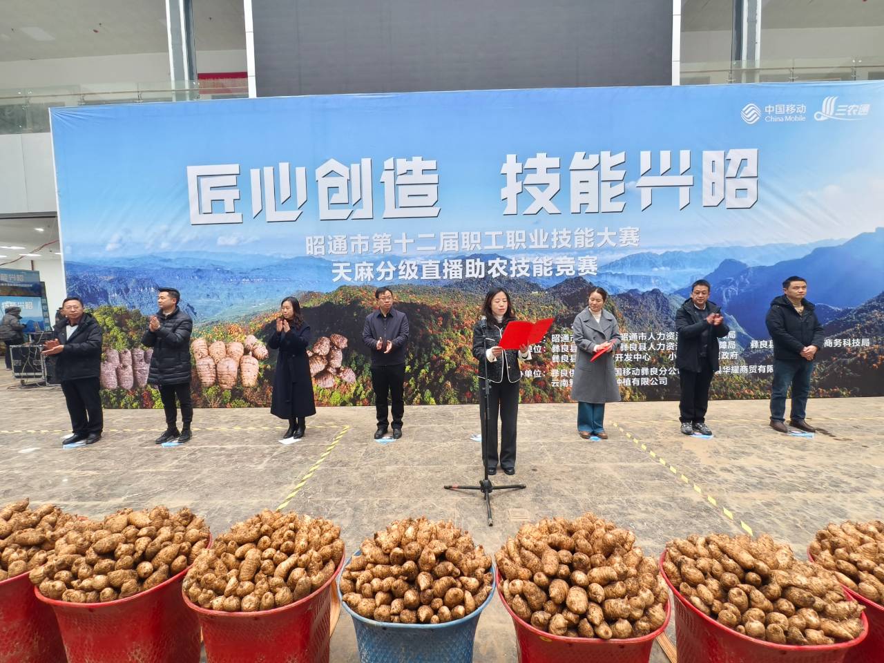 近日,彝良小草坝天麻国际交易中心人头攒动、热闹非凡,昭通市第十二届职工职业技能大赛天麻分级直播助农技能竞赛在交易中心火热开赛。