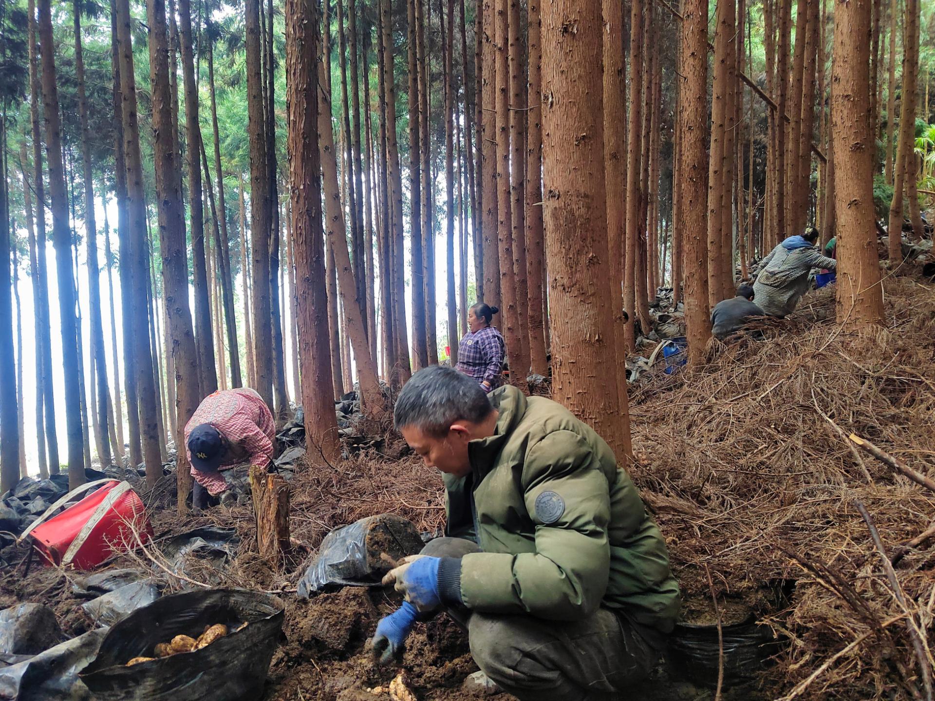 “看!”黄登富忽然蹲下身子,动作轻柔地拨开一层腐殖土,下面静静地卧着几个鹅卵石似的东西,淡黄色的表皮上印着一圈圈神秘的纹路。它们不像果实那样高挂枝头,也不像花朵那般引人注目,只在黑暗与寂静中度过一生。