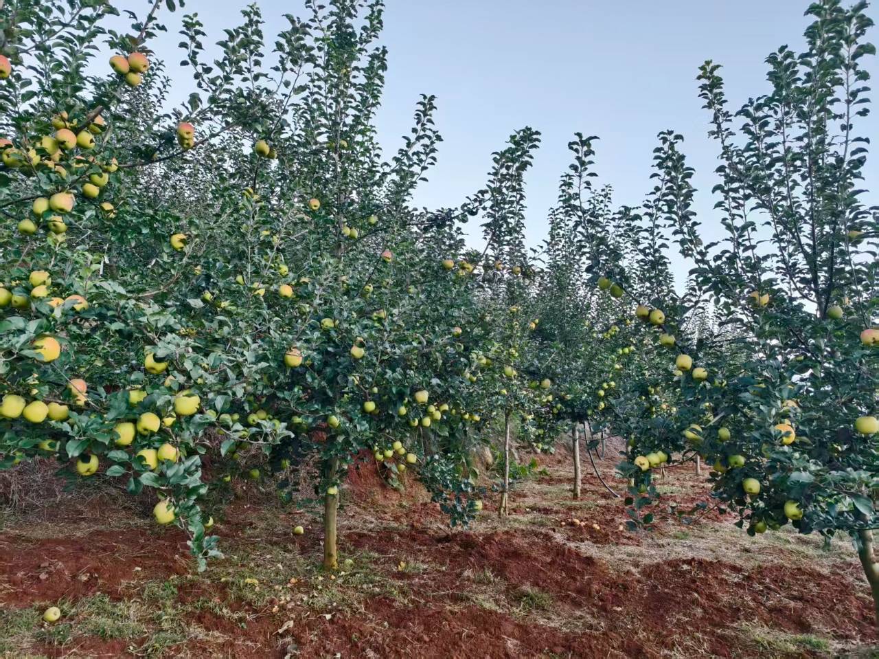 大雪时节刚过,寒意渐浓,苏家院镇迤那村砖城的果农袁宗文和他媳妇刘顺巧便已开始在苹果树下打药、施肥、修枝……忙得不亦乐乎。