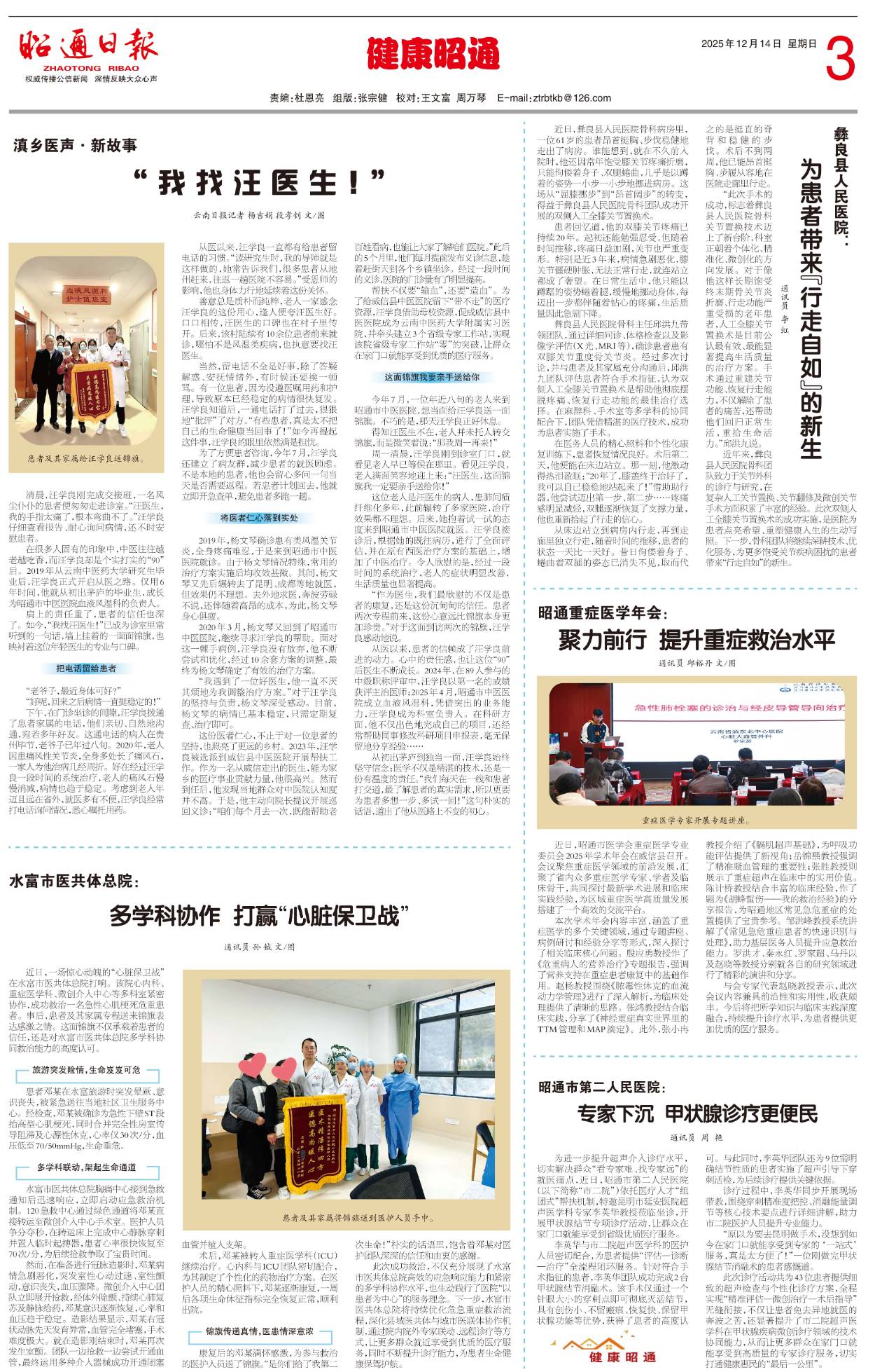从医以来,患者的信赖成了汪学良前进的动力。心中的责任感,也让这位“90”后医生不断成长。2024年,在89人参与的中级职称评审中,汪学良以第一名的成绩获评主治医师;2025年4月,昭通市中医医院成立血液风湿科,凭借突出的业务能力,汪学良成为科室负责人。在科研方面,他不仅出色地完成自己的项目,还经常帮助同事修改科研项目申报表,毫无保留地分享经验……