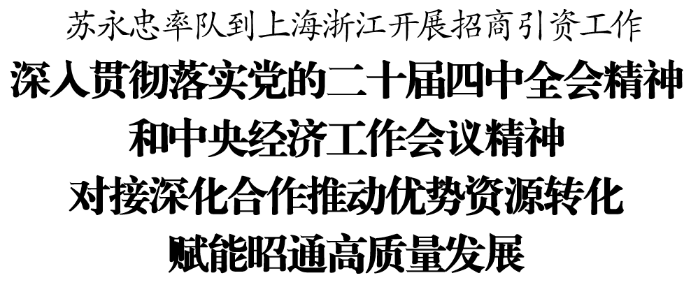 12月14日至16日,市委书记苏永忠率队到上海市、浙江省开展招商引资工作,深入贯彻落实党的二十届四中全会精神和中央经济工作会议精神,对接深化政企合作、校地合作,推动优势资源转化,赋能昭通高质量发展。