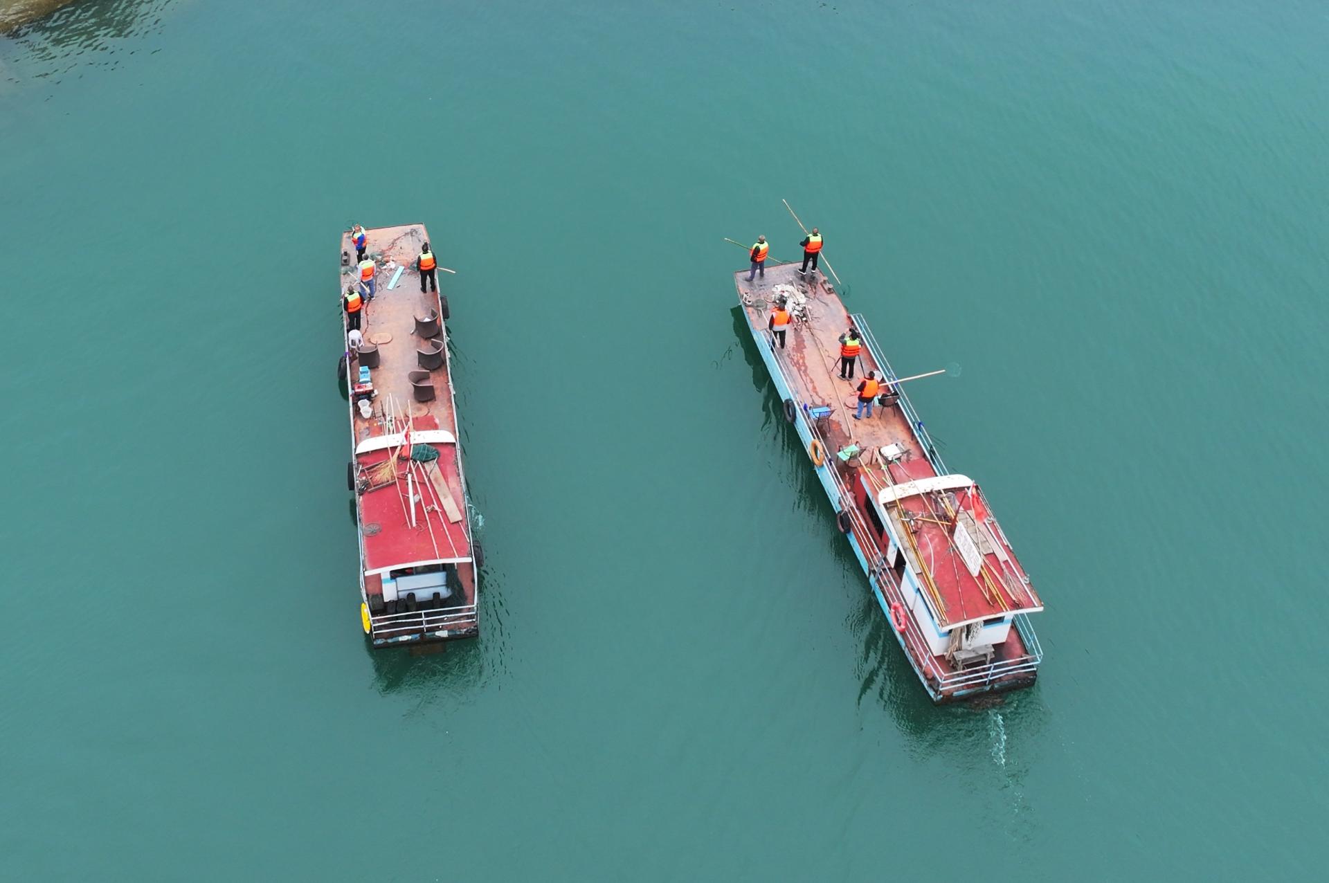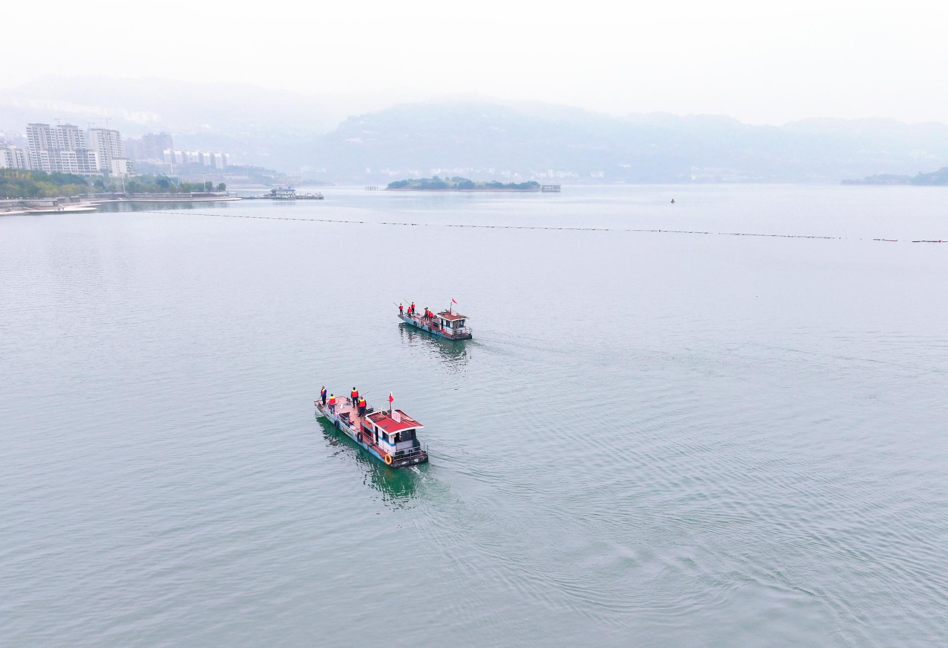 这不是一份轻松的工作。在气温仅有几摄氏度的江面上,队员们手持数米长的捞网立于船头,目光如鹰隼般扫视着江面。一个泡沫块、一段枯枝,都逃不过他们的眼睛。