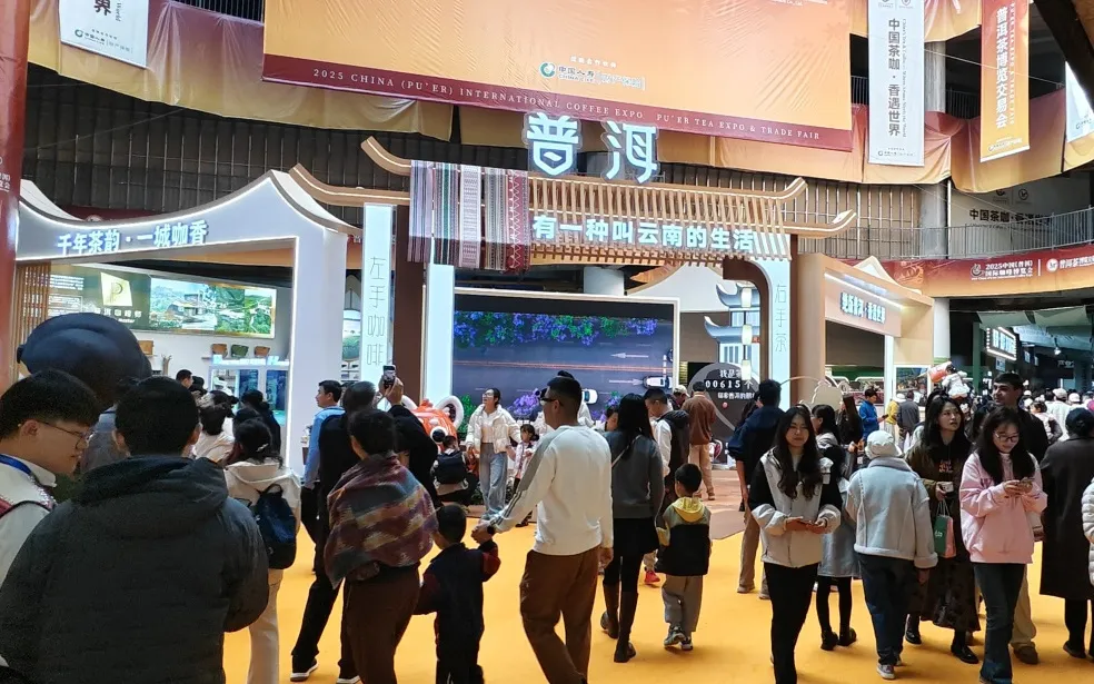▲2025中国(普洱)国际咖啡博览会普洱茶博览交易会上客商络绎不绝。