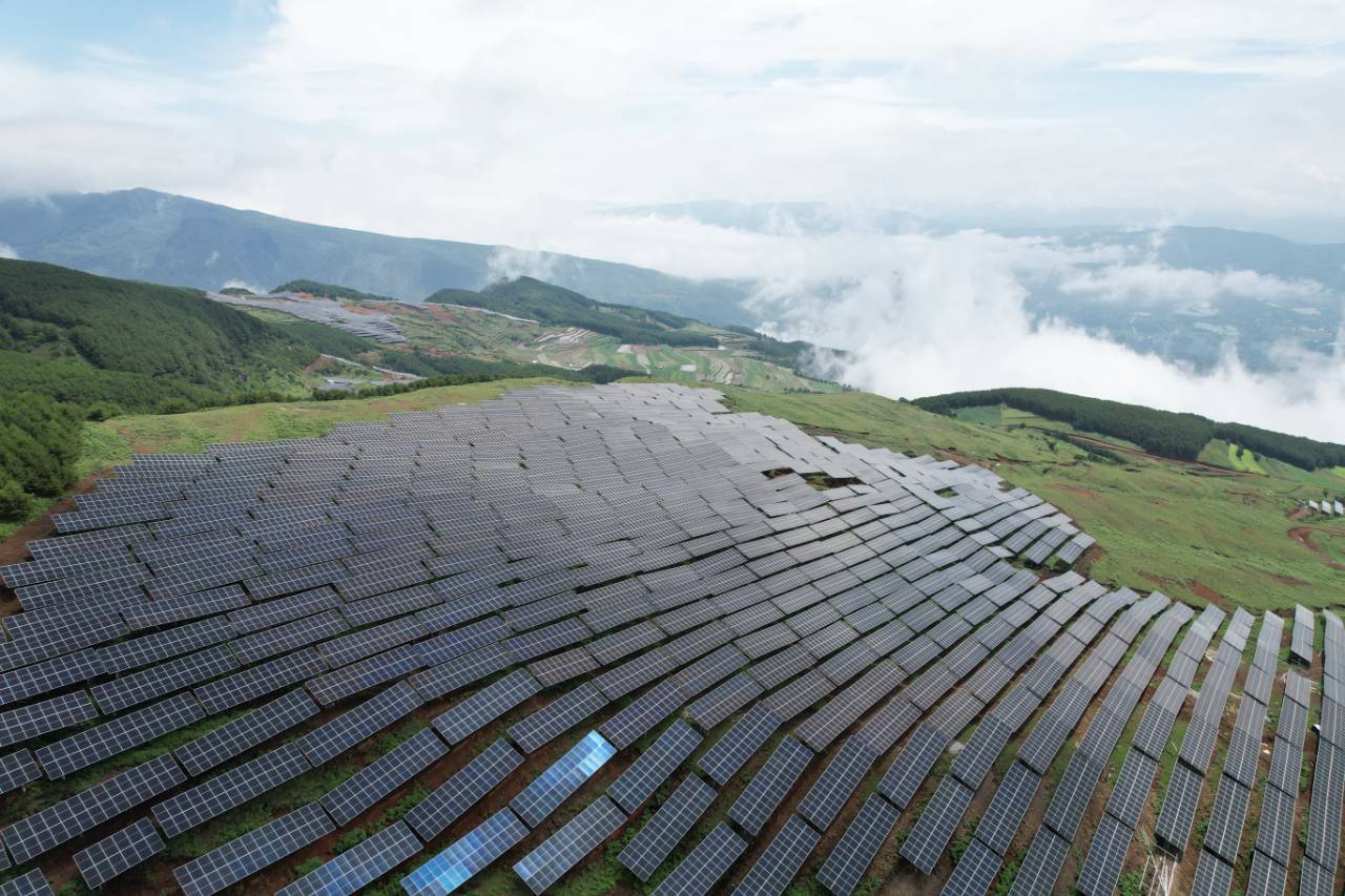 光伏板一排排整齐地铺设山间 2024年6月19日 黄开瑜 摄