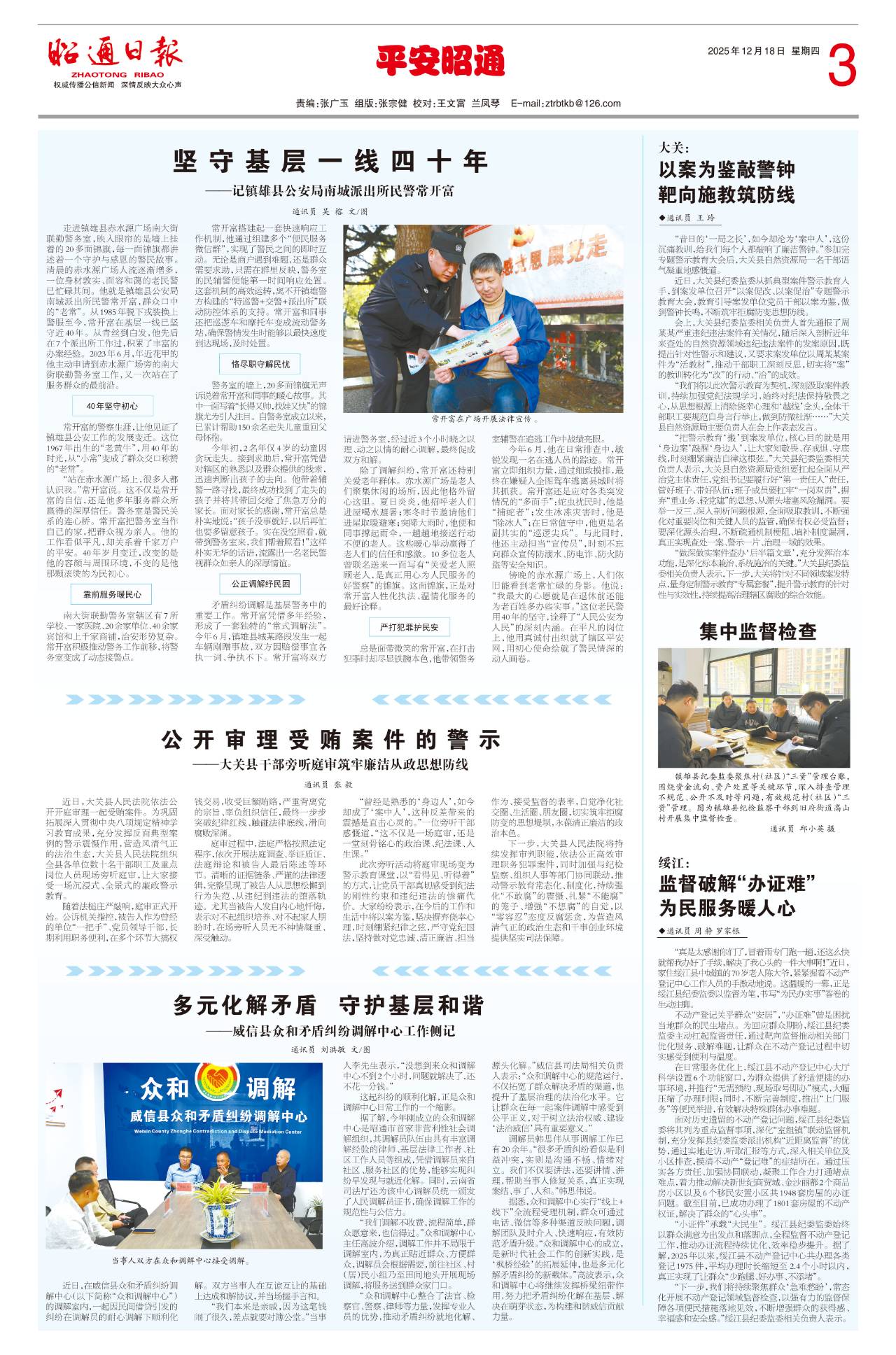 今年6月,他在日常排查中,敏锐发现一名在逃人员的踪迹。常开富立即组织力量,通过细致摸排,最终在嫌疑人企图驾车逃离县城时将其抓获。常开富还是应对各类突发情况的“多面手”:蛇虫扰民时,他是“捕蛇者”;发生冰冻灾害时,他是“除冰人”;在日常值守中,他更是名副其实的“巡逻尖兵”。与此同时,他还主动担当“宣传员”,时刻不忘向群众宣传防溺水、防电诈、防火防盗等安全知识。